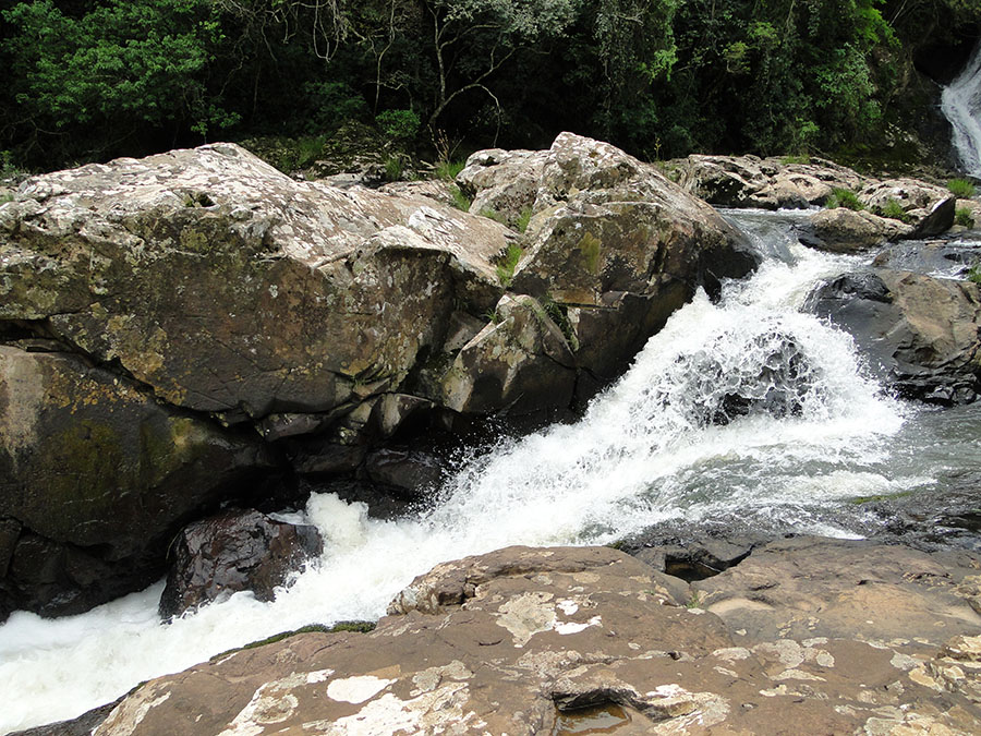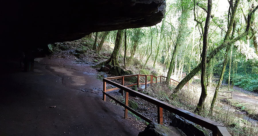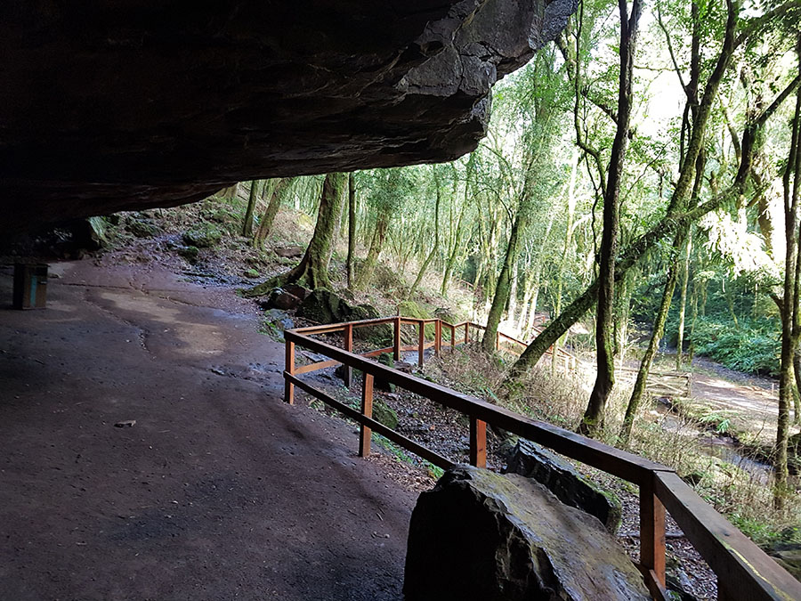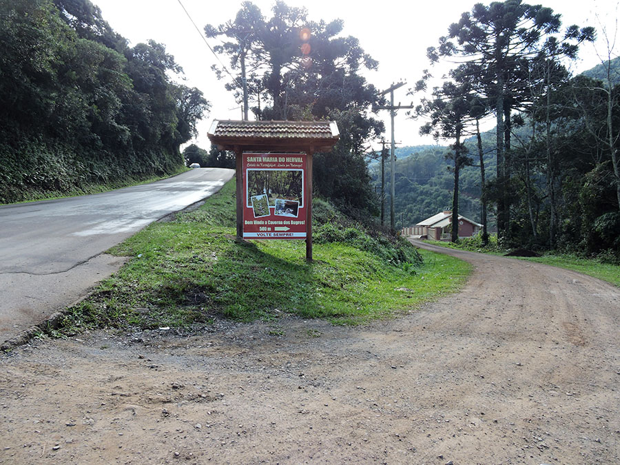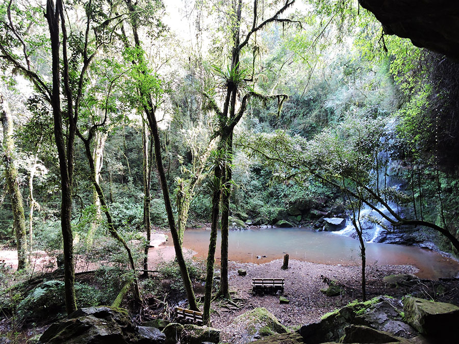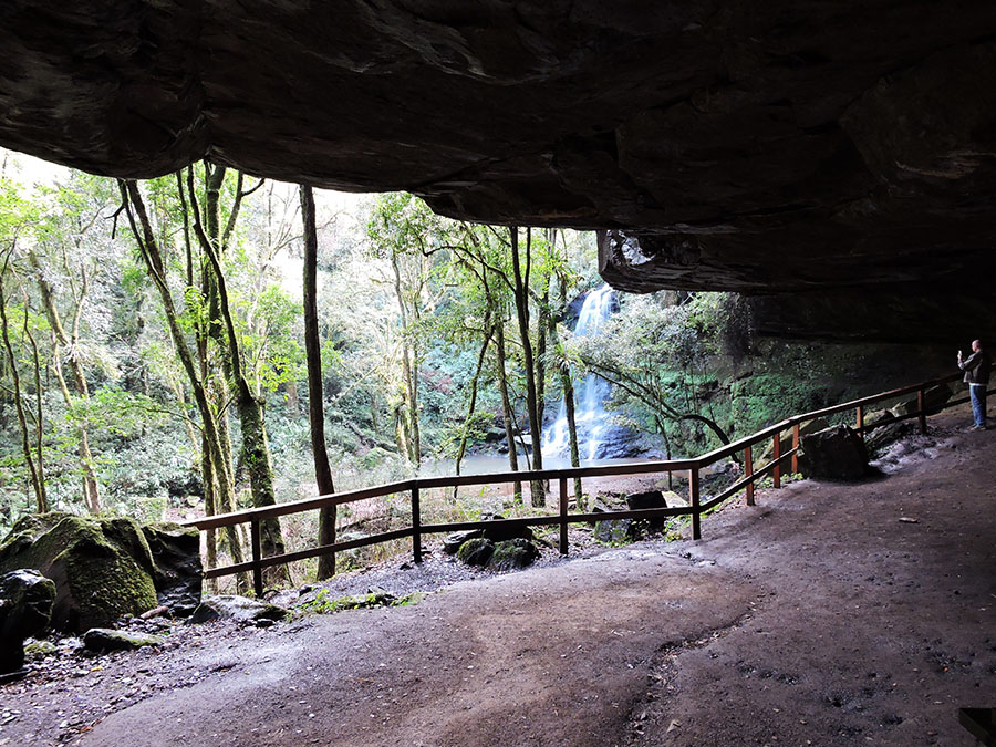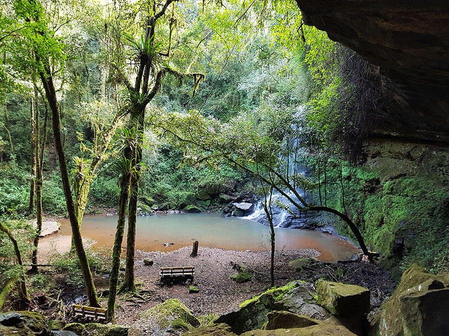A próxima parada é na cascata e Caverna dos Bugres, que fica bem próximo ao centro da cidade (1,5 km), seguindo pela estrada principal, à direita.  A caverna, antigamente, era usada como moradia pelos  índios caingangues.