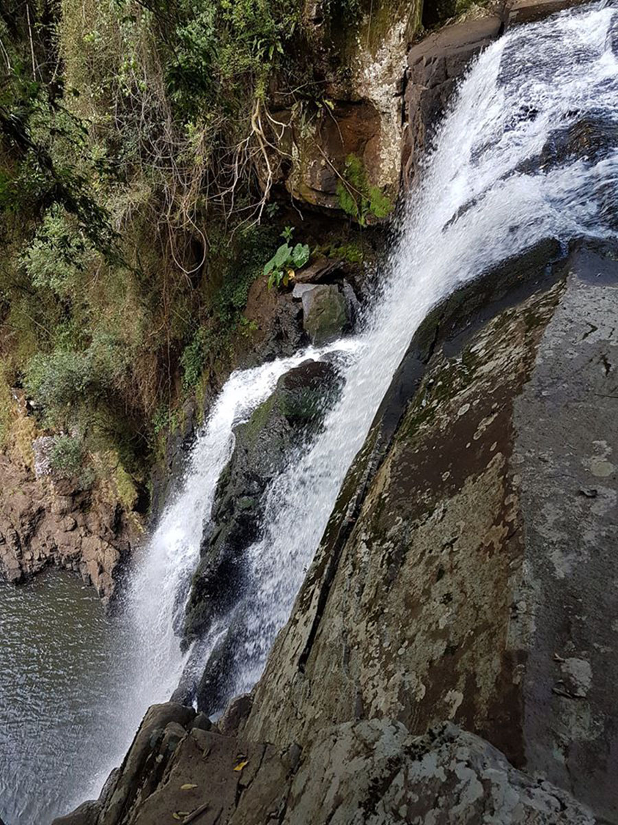 Está localizada no interior do município (10 km do centro da cidade) e fica dentro de uma propriedade particular. O dono do local é muito amigável e não impõe restrições para conhecer o local. A queda d’água conta com uma queda d’água de 65 metros de altura aproximadamente, cercada por uma grande área de mata nativa. Para chegar a base é necessário fazer trilhas.