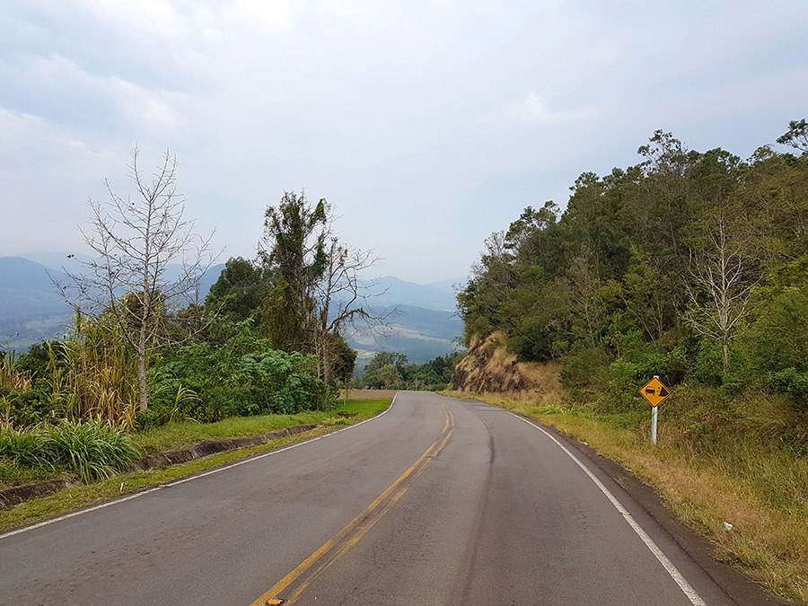 Já no retorno via Presidente Lucena, a vista dos morros é muito linda e, por ser descida, dá para apreciar a paisagem o tempo todo. No meio da descida há um mirante para contemplar as belezas naturais.