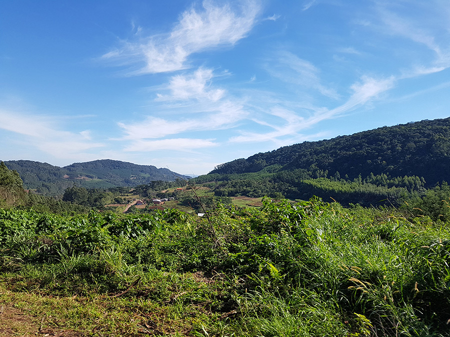 Iniciando o passeio por Nova Petrópolis o que chama atenção são as casas antigas e a paisagem dos morros, em ambos lados da estrada.