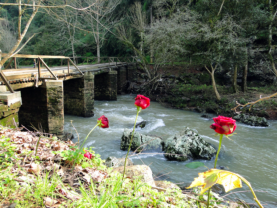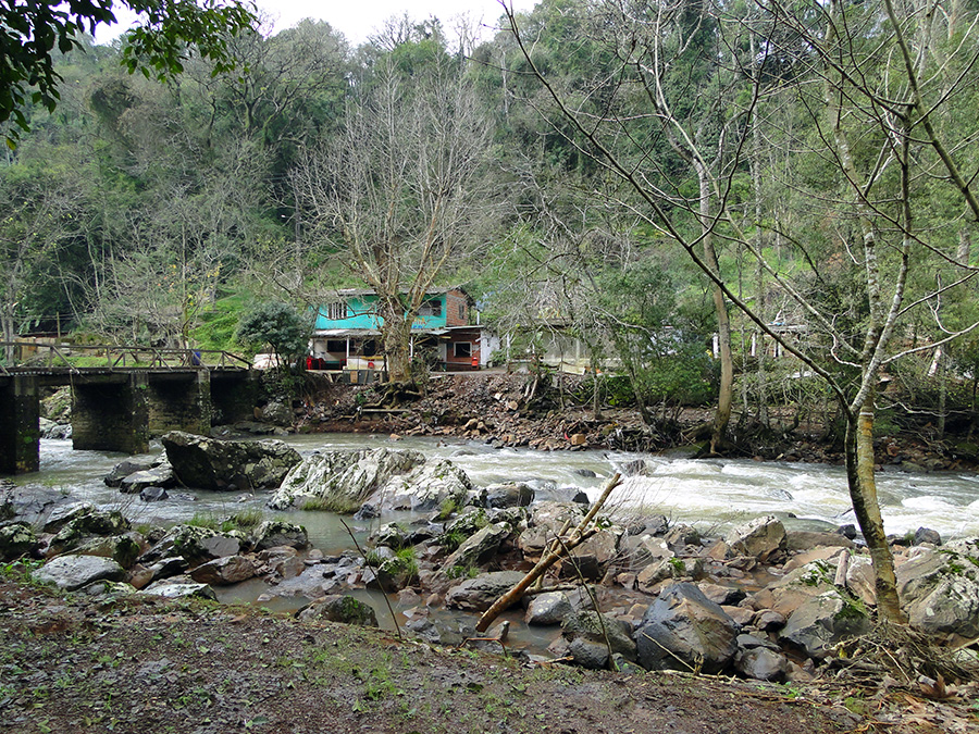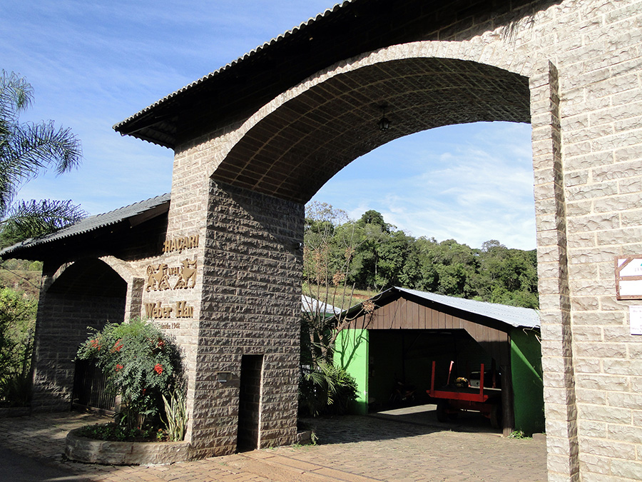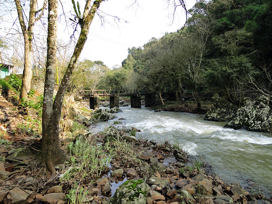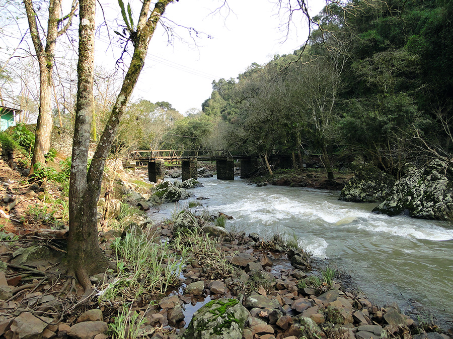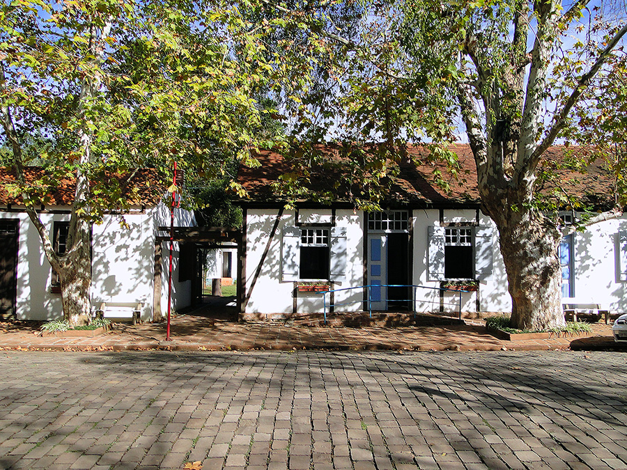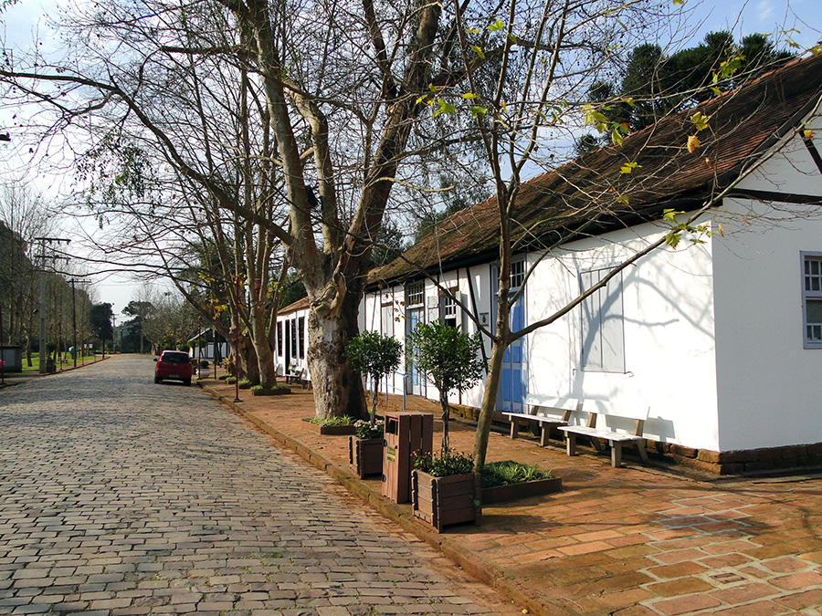 Após cruzar a ponte, encontra-se cinco, das 32 casas construídas com a técnica enxaimel existentes na cidade. Neste local, instalaram-se as primeiras famílias de imigrantes alemães, na primeira metade do século XIX, mais precisamente, no ano de 1826. Essas famílias construíram casas em estilo enxaimel, técnica construtiva que utiliza estrutura de madeira sem pregos ou parafusos. As paredes são preenchidas com pedras e cimentadas com argila. Um sistema construtivo primitivo, porém, intrigante, pois as madeiras são cuidadosamente encaixadas através de entalhes e o resultado são casas que atravessem séculos sem esmorecer