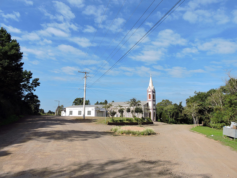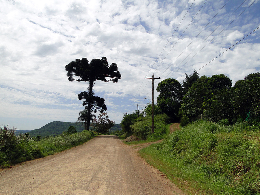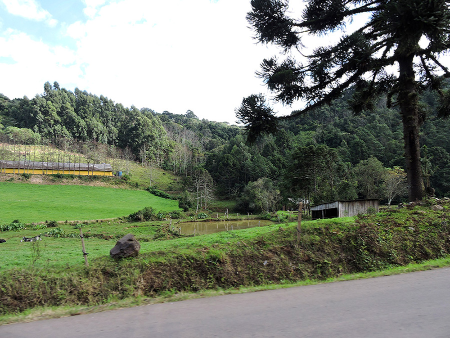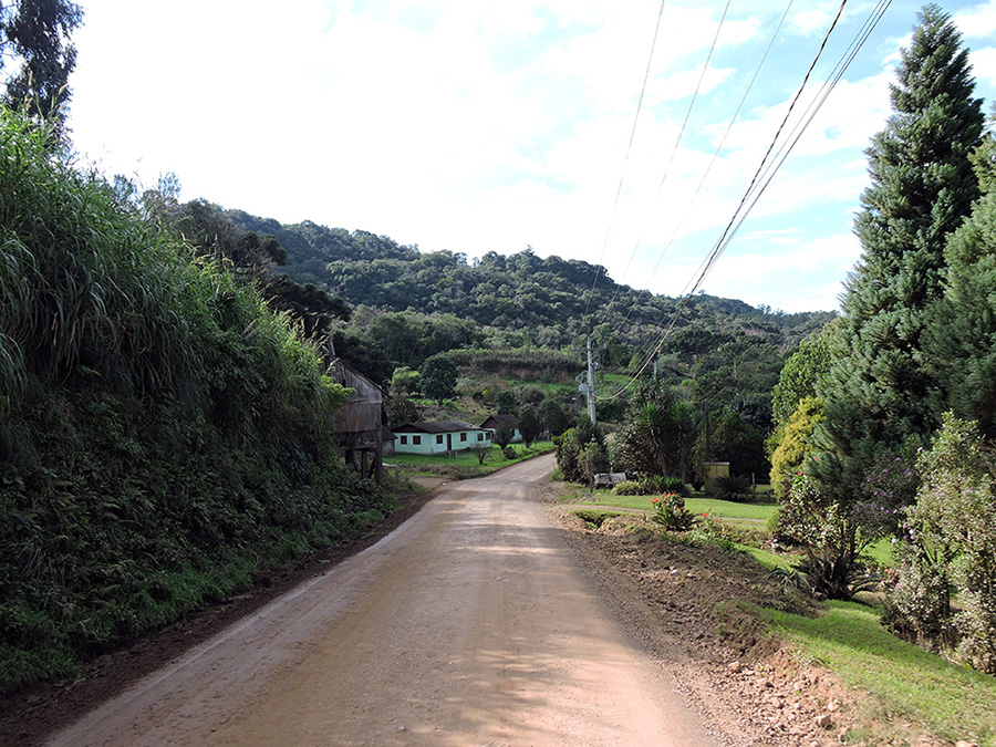 Após Santa Maria do Herval, há um bom trecho de estrada de chão, com diversas propriedades rurais, animais nos campos e lindas paisagens em meio aos morros.