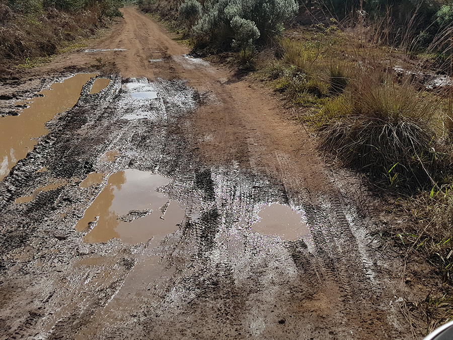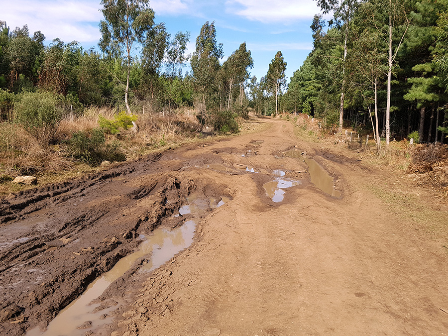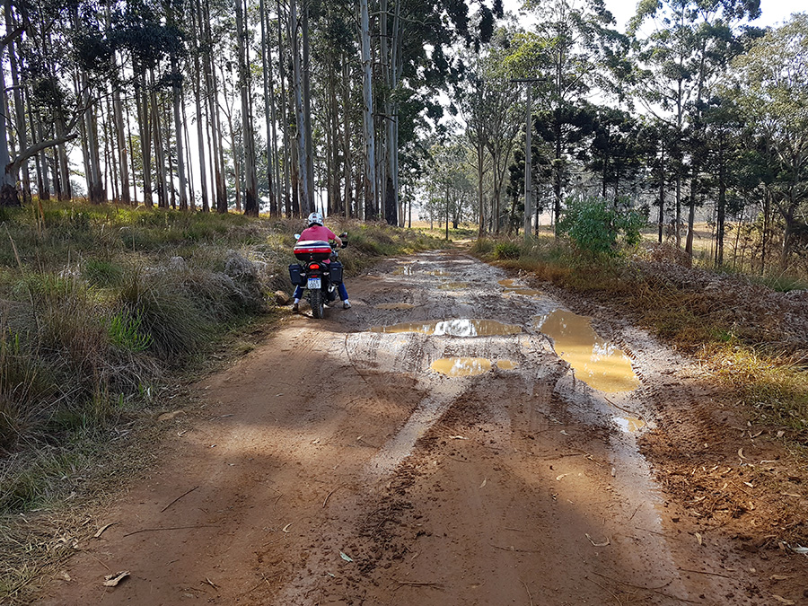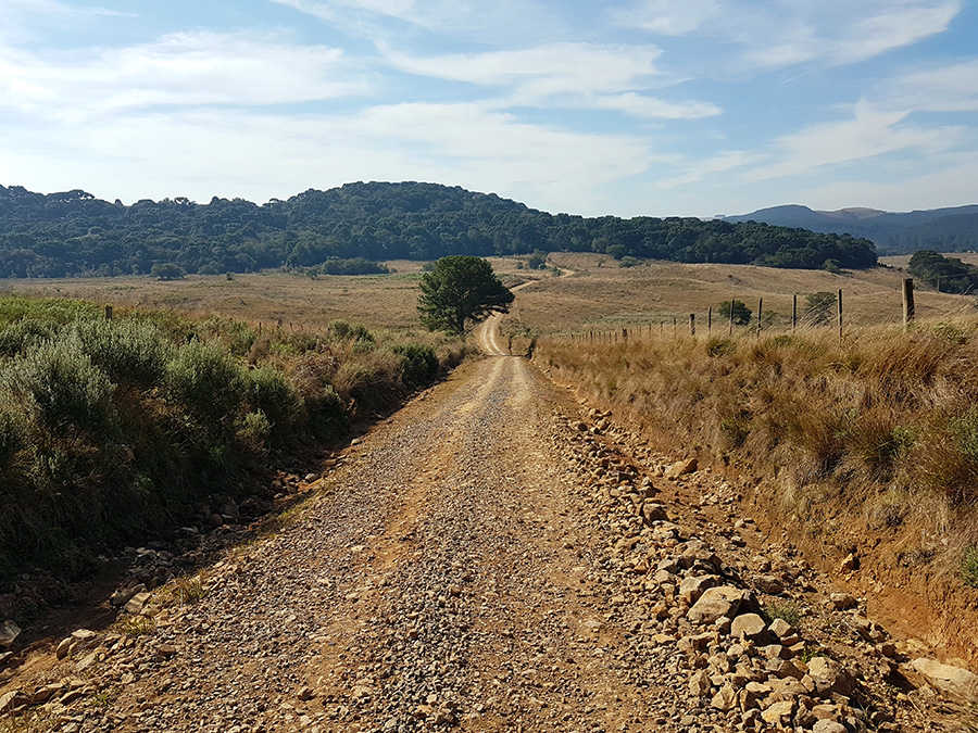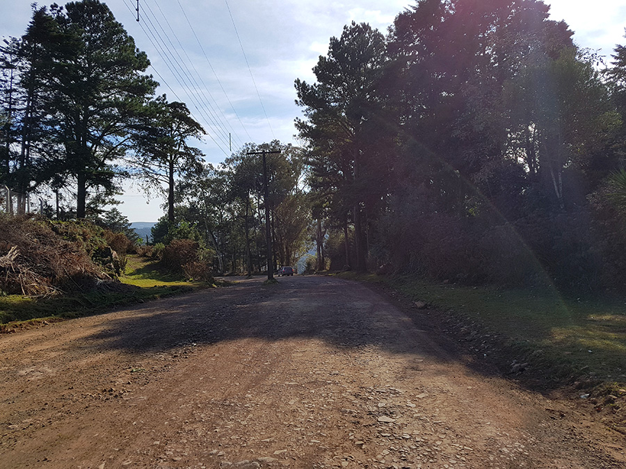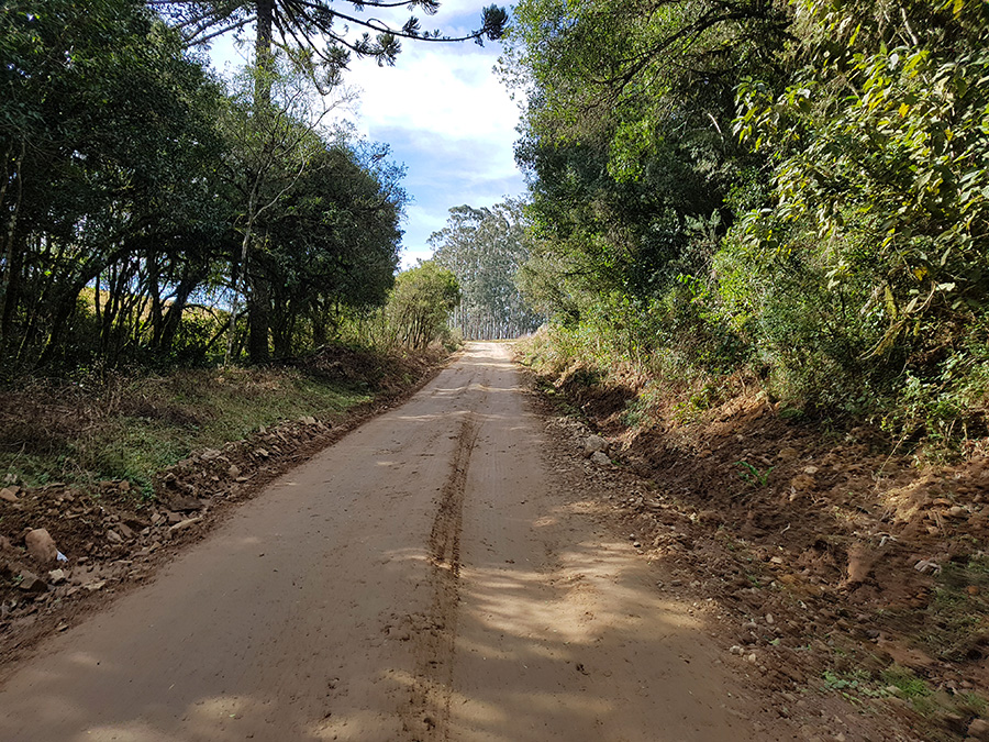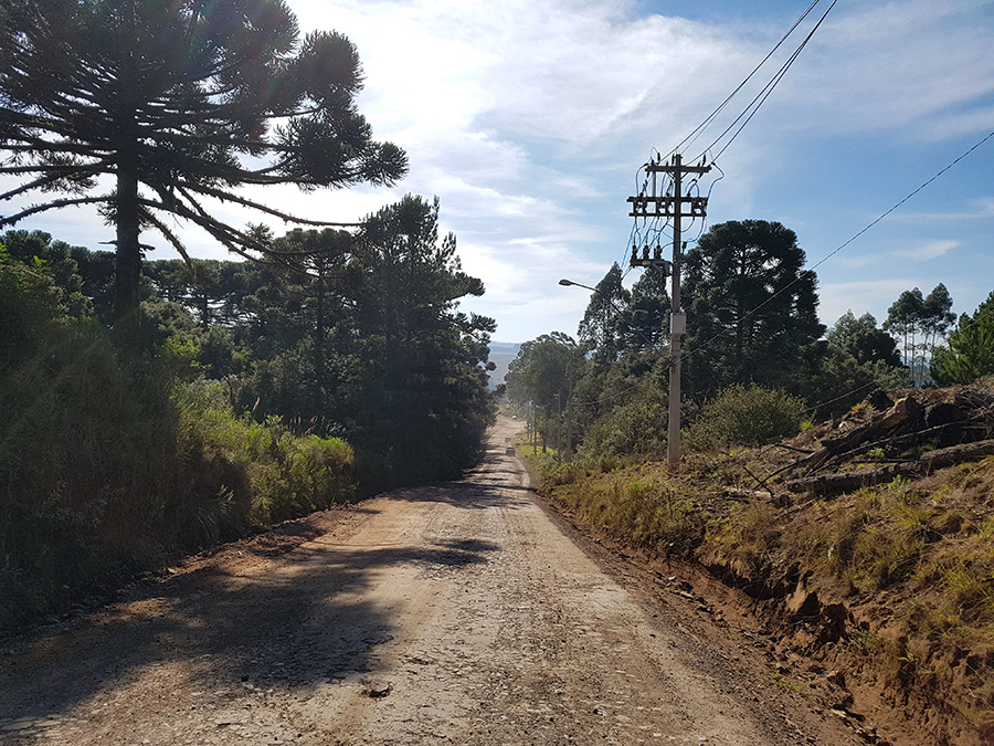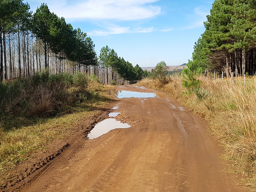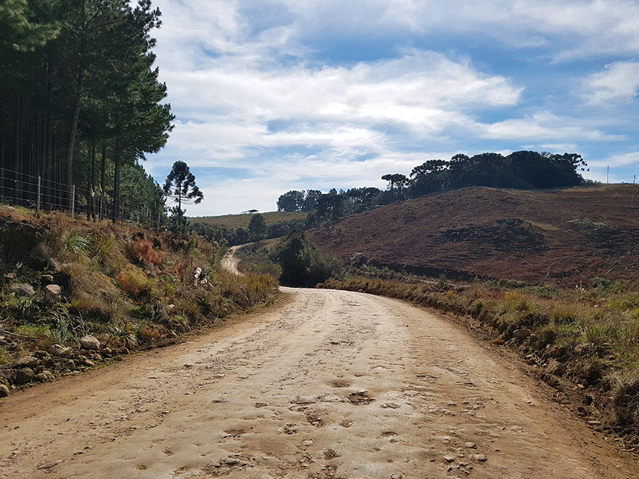 Por estar em meio a pinheiros, a estrada tem trechos úmidos, com poças d’água e muitos buracos causados pelo tráfego de caminhões carregados de toras de madeira, além é claro, dos pedregulhos da estrada. É um trajeto para quem curte aventura e adrenalina. Não recomendo utilizar veículo de passeio para este trecho da estrada.