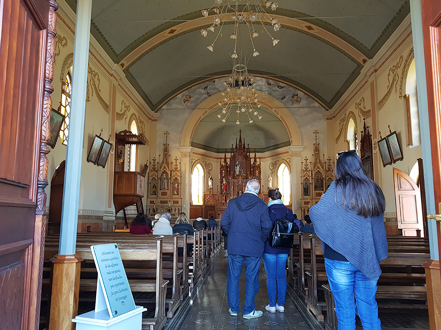 A estrutura conserva a originalidade nas portas pesadas com maçanetas muito antigas, na pintura das paredes com imagens sacras, nos bancos de madeira, nos oratórios e principalmente nos altares de madeira com algumas imagens que datam do início da construção.