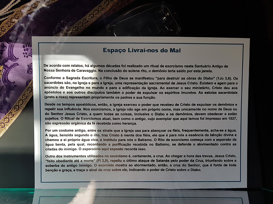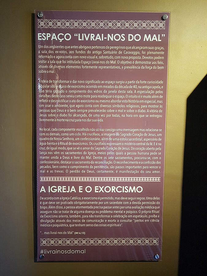 A sala intitulada Espaço Livrai-nos do Mal demonstra, através de diversos elementos representativos, a prevalência da força do bem sobre o mal.