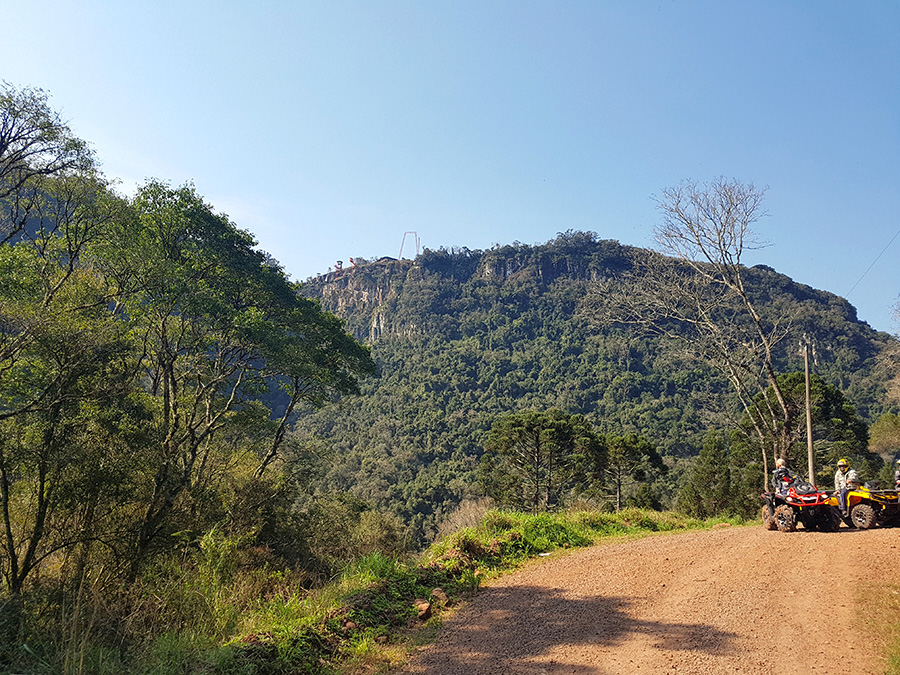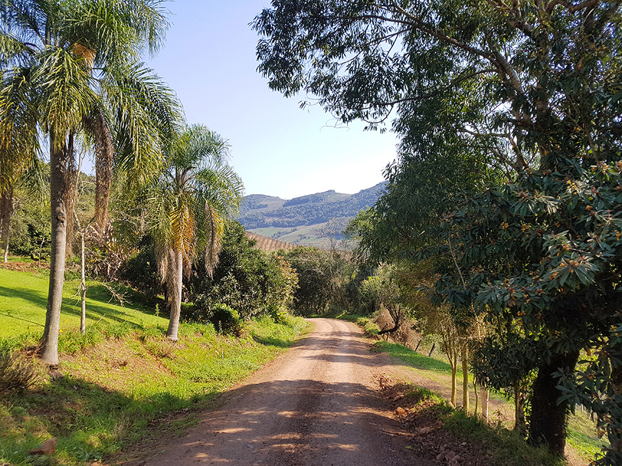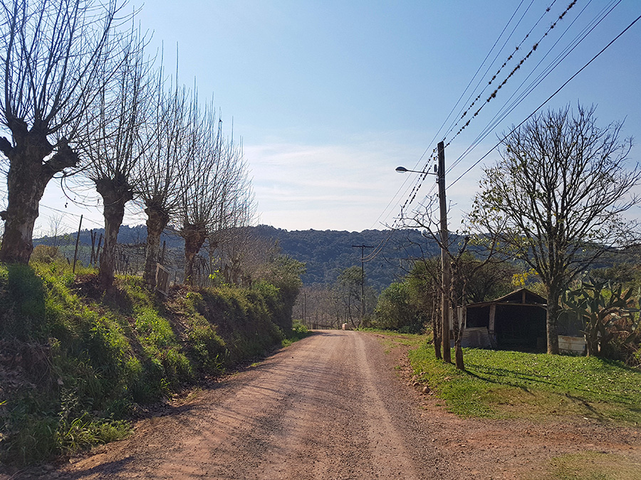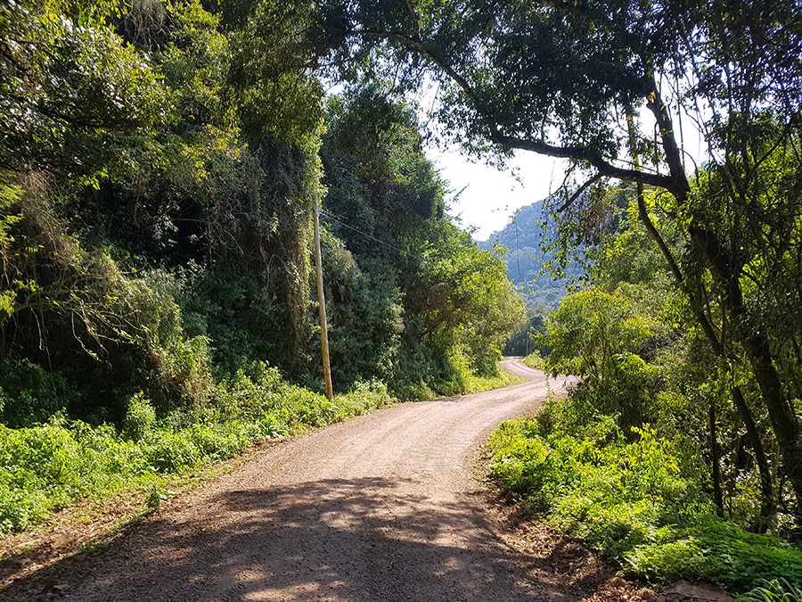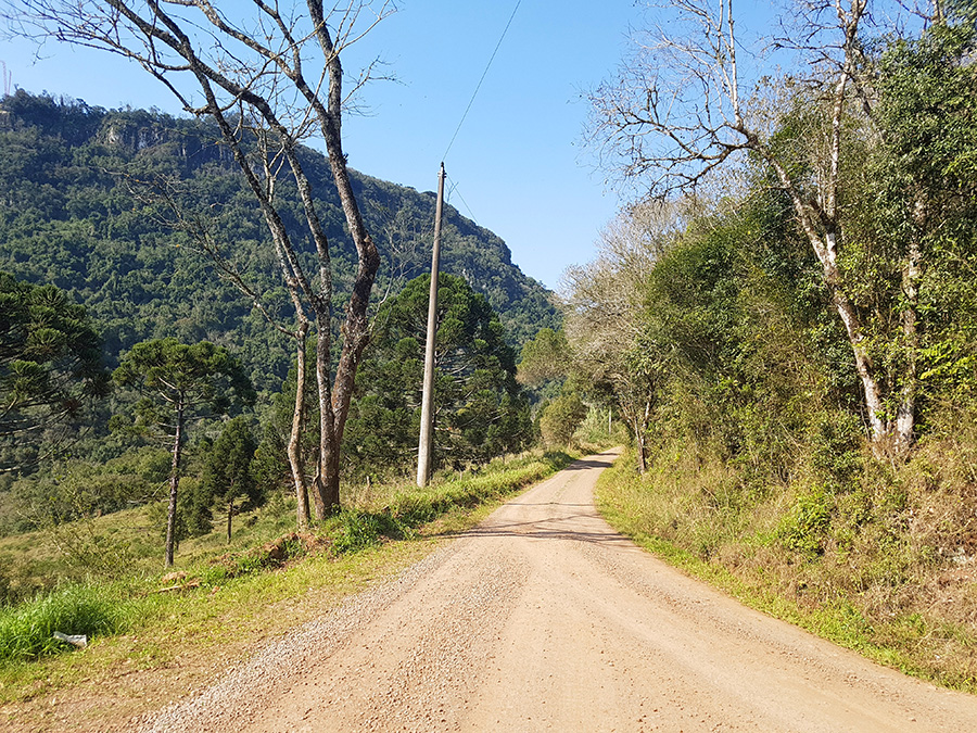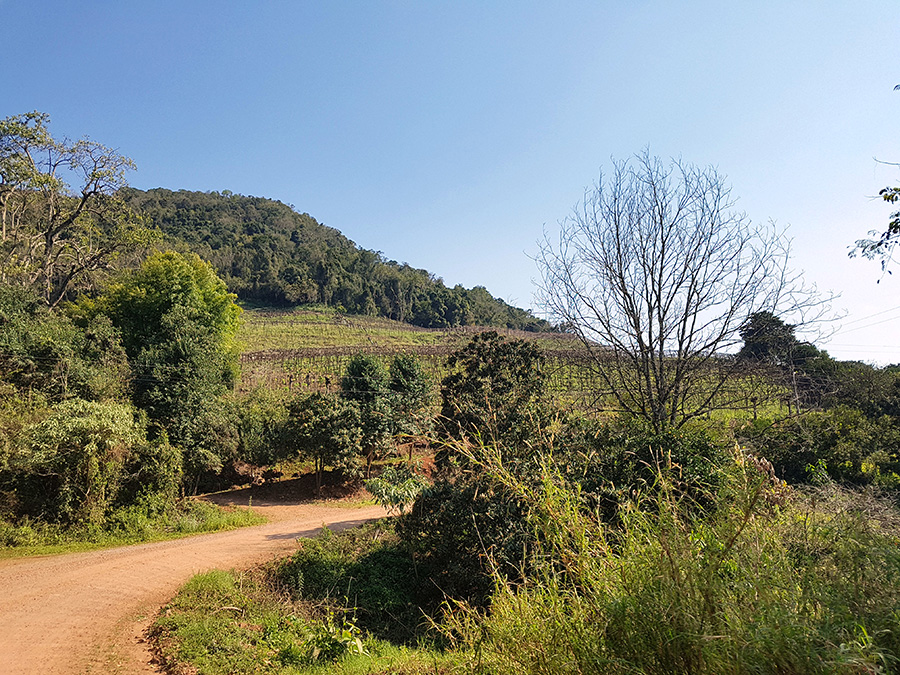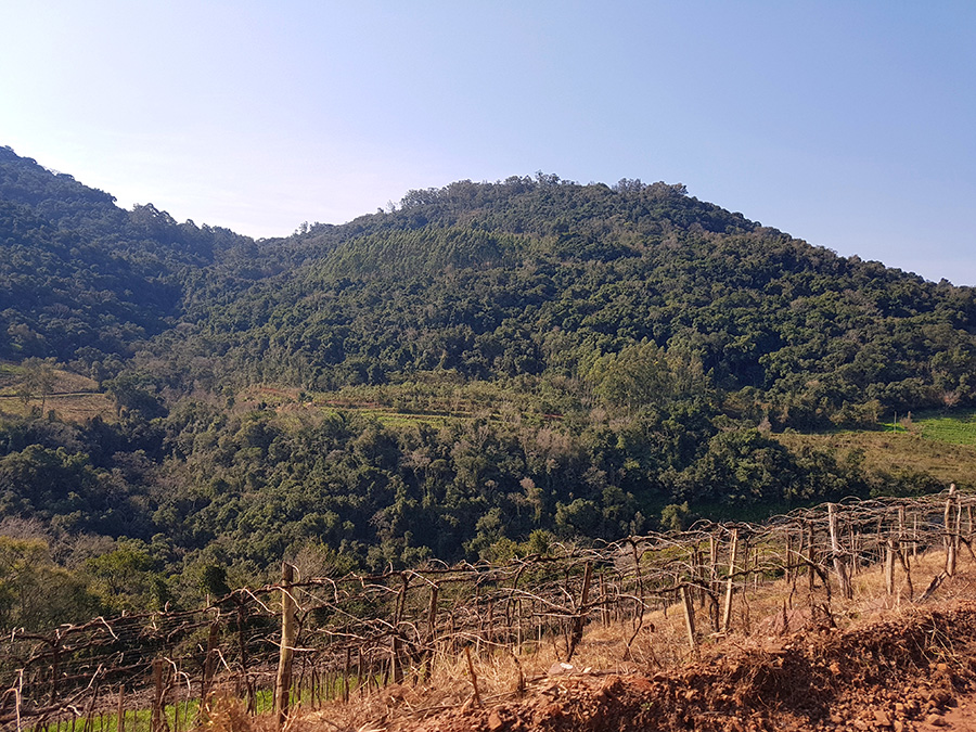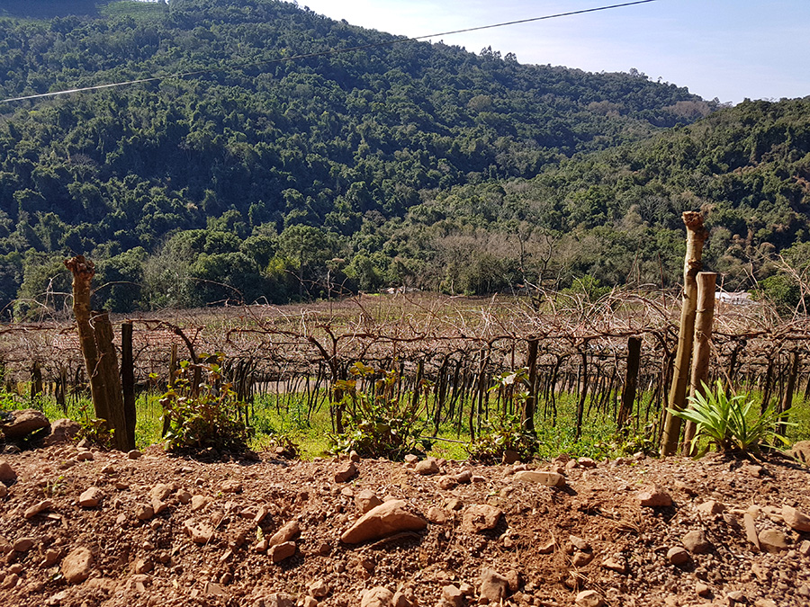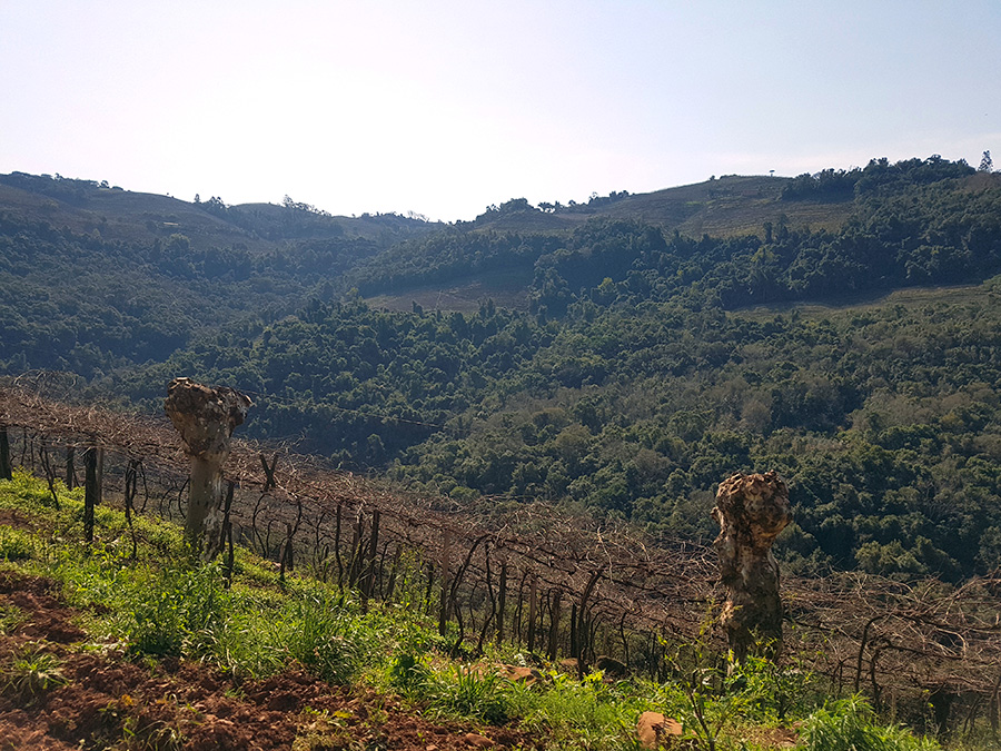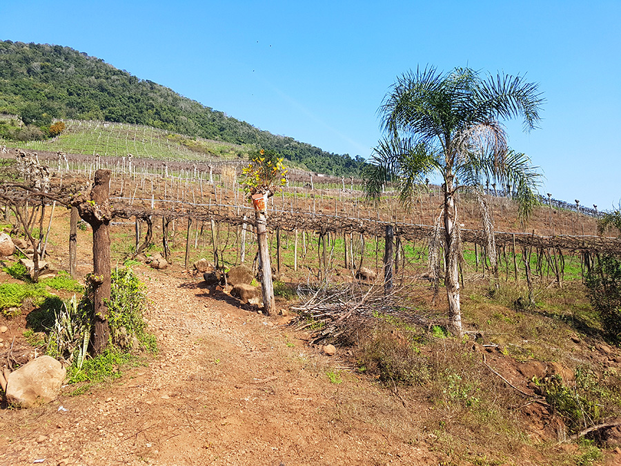 Diversos parreirais, geralmente em uma topografia acidentada. A paisagem da estrada é formada por montanhas, vales e um incrível paredão de pedras, onde no alto, está situado o Parque Gasper.