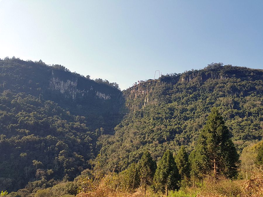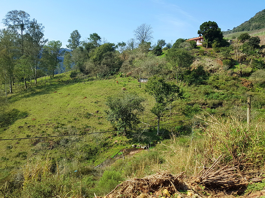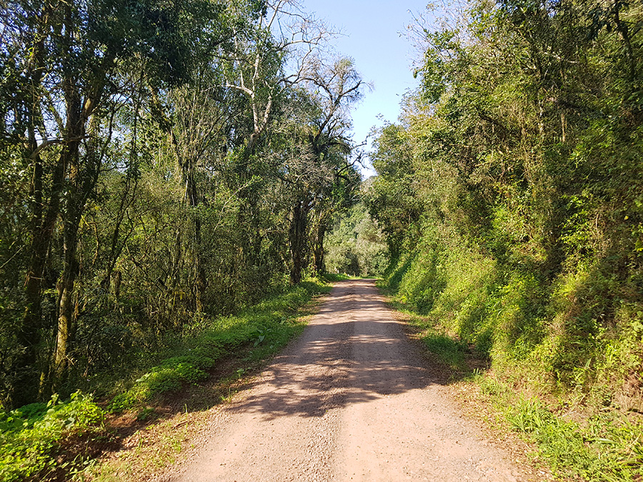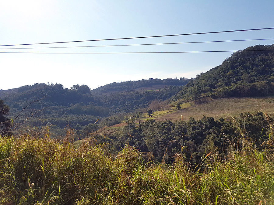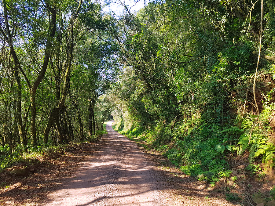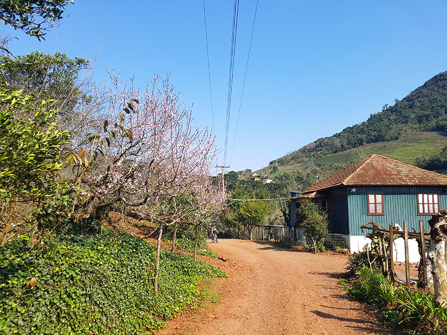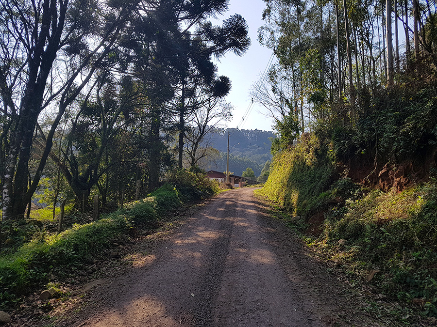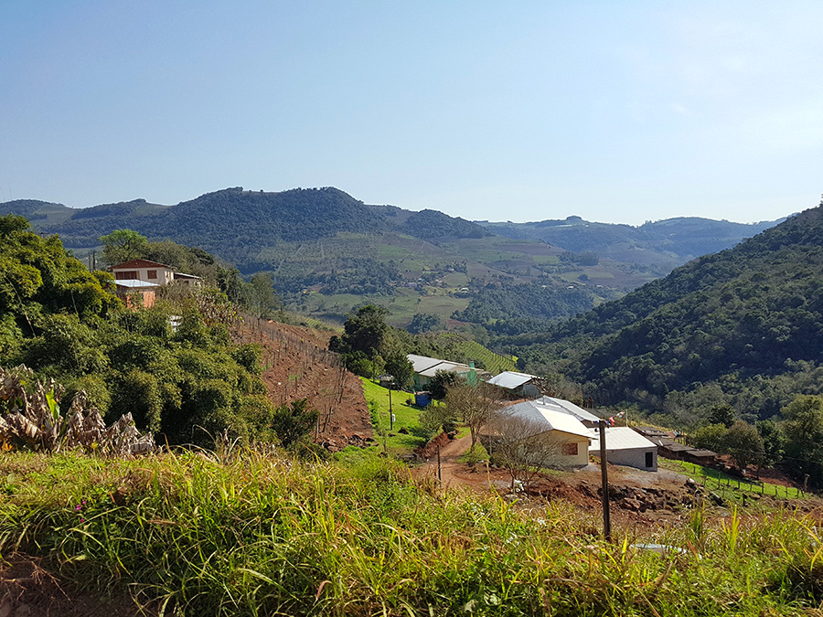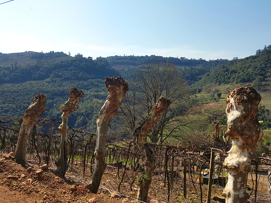 Diversos parreirais, geralmente em uma topografia acidentada. A paisagem da estrada é formada por montanhas, vales e um incrível paredão de pedras, onde no alto, está situado o Parque Gasper.