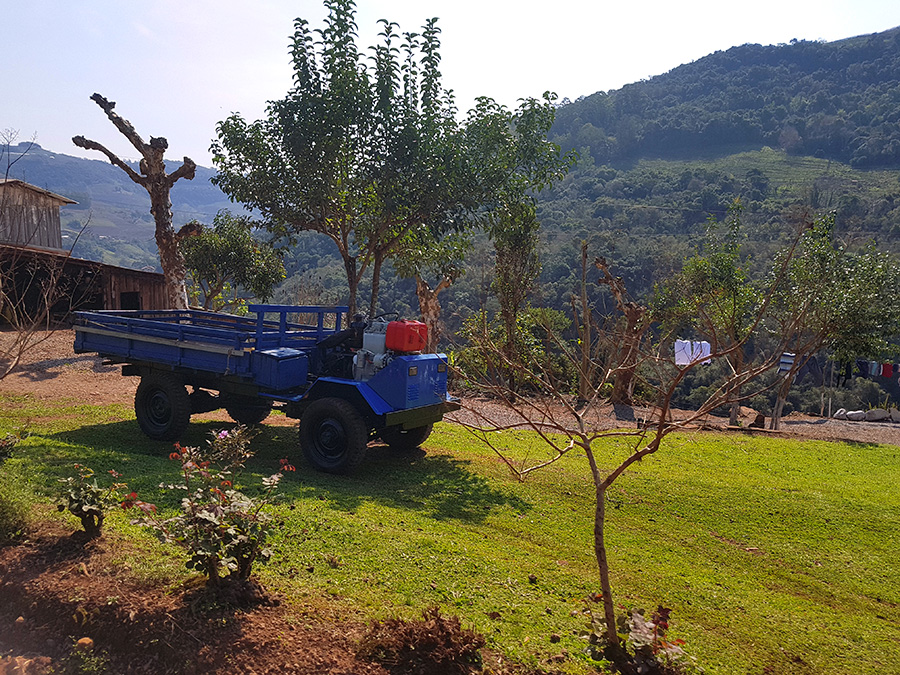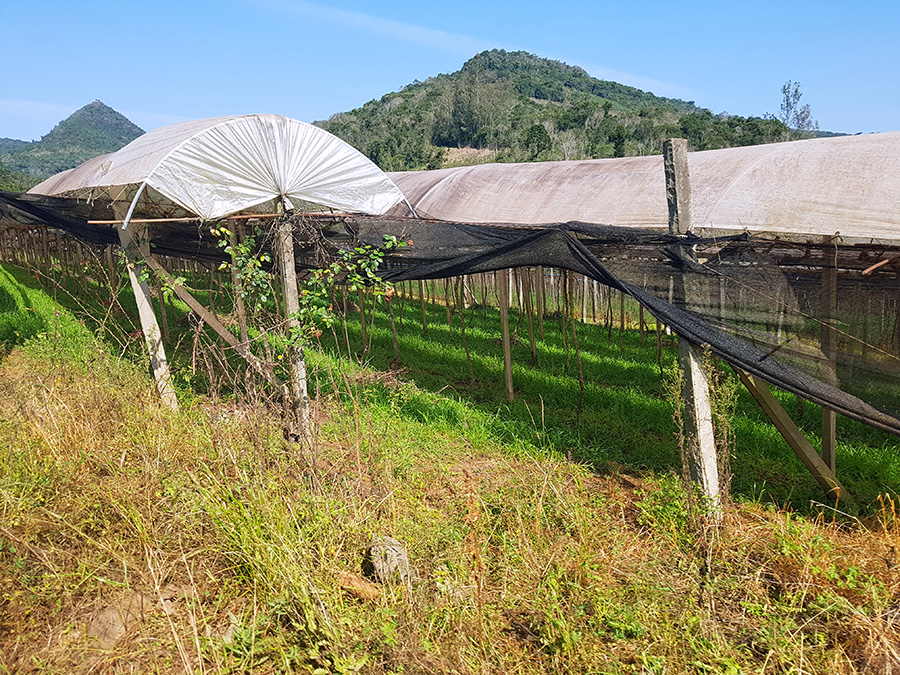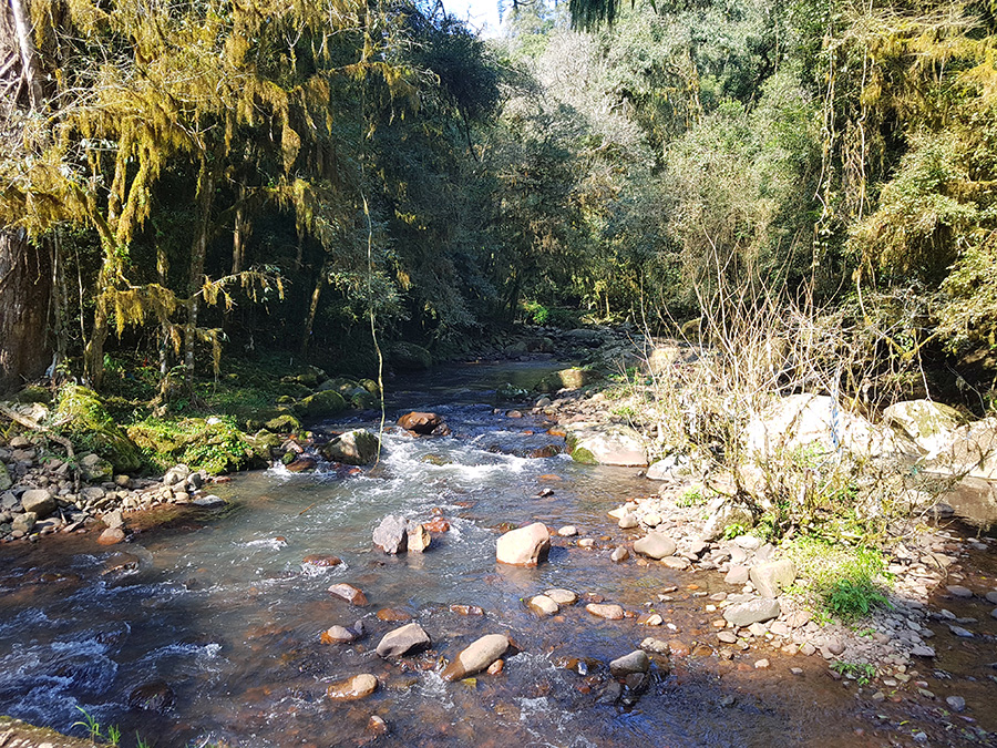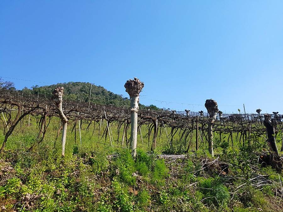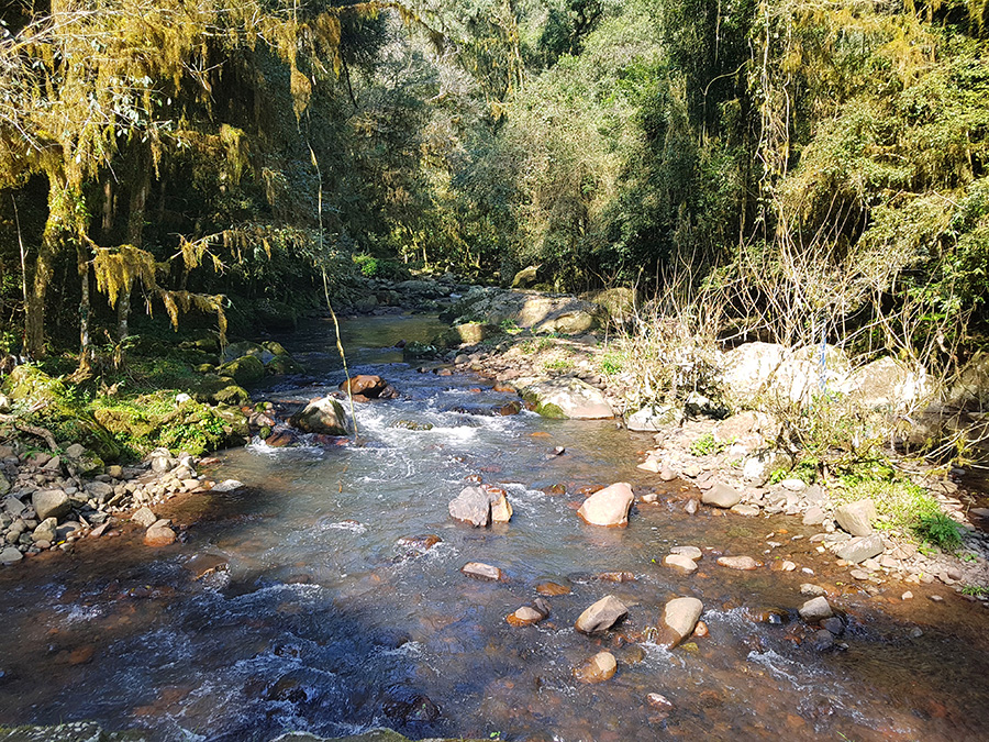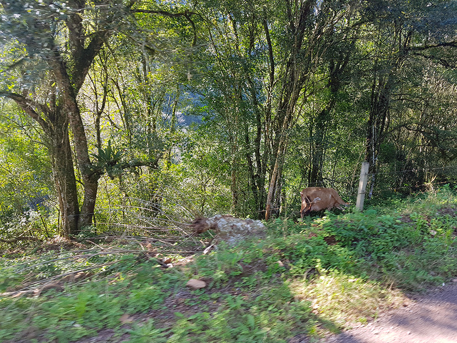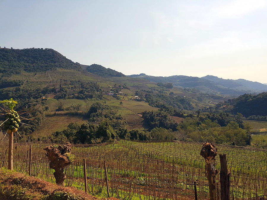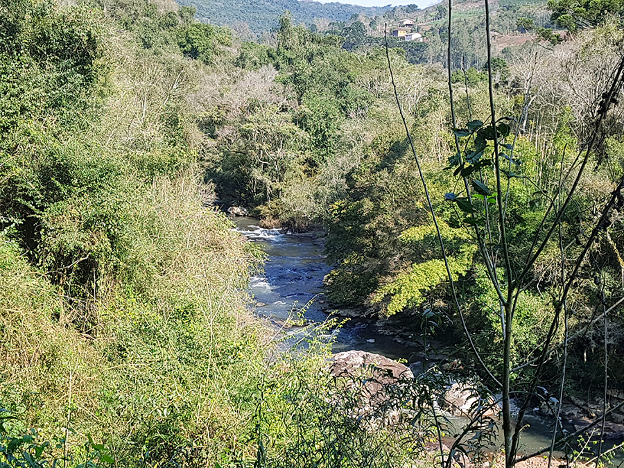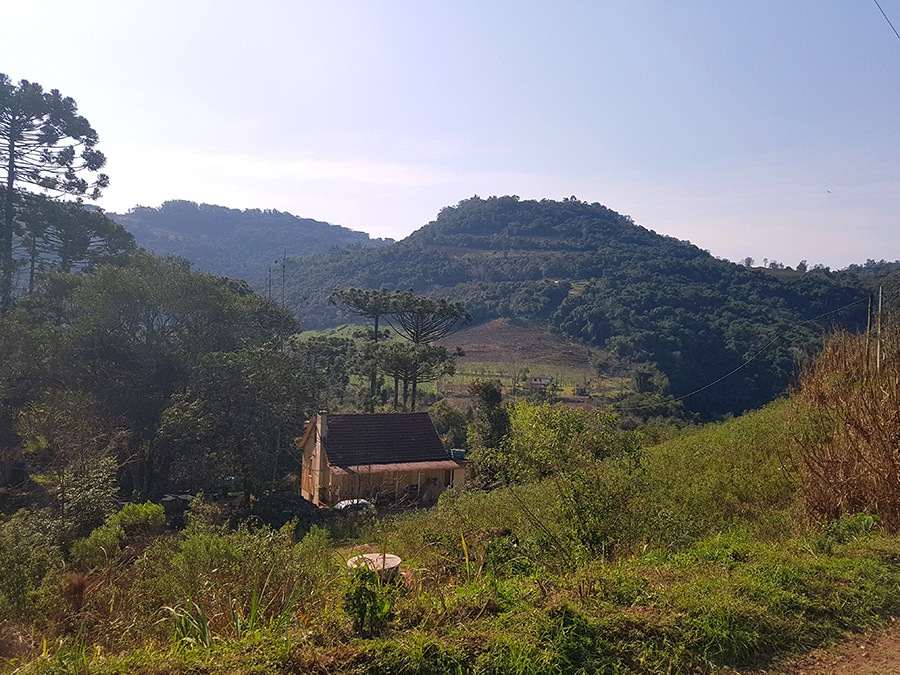 Diversos parreirais, geralmente em uma topografia acidentada. A paisagem da estrada é formada por montanhas, vales e um incrível paredão de pedras, onde no alto, está situado o Parque Gasper.