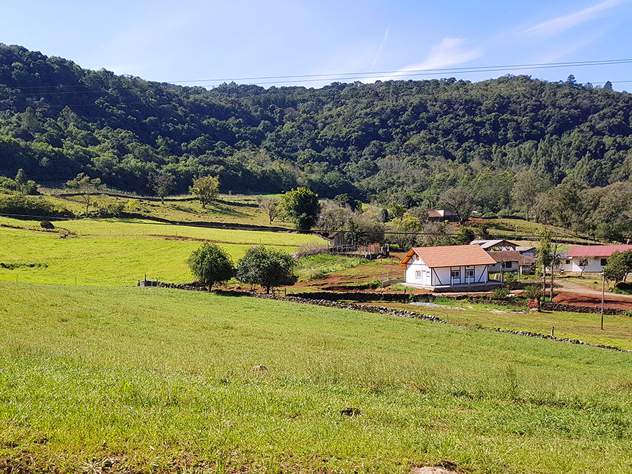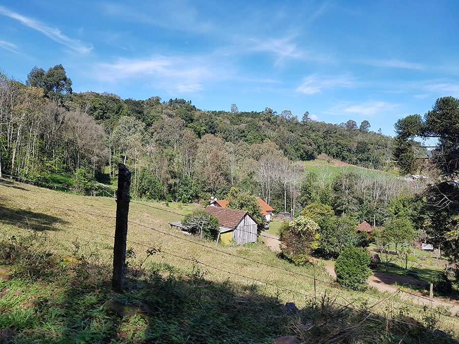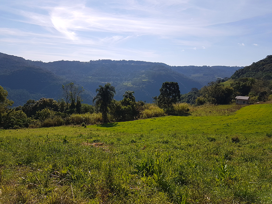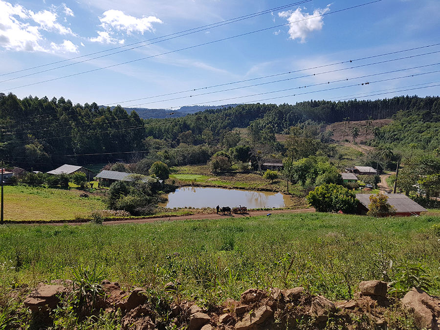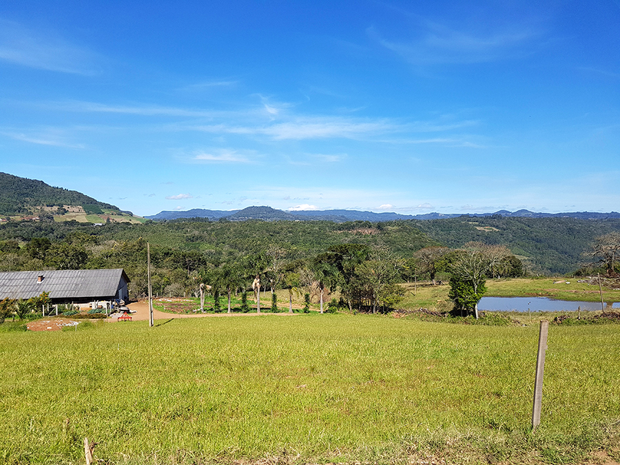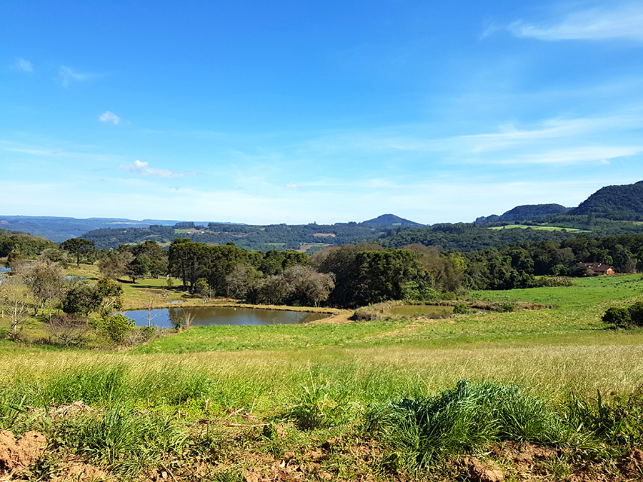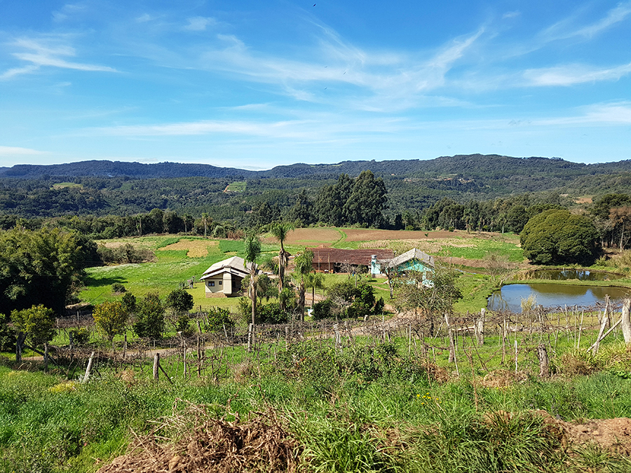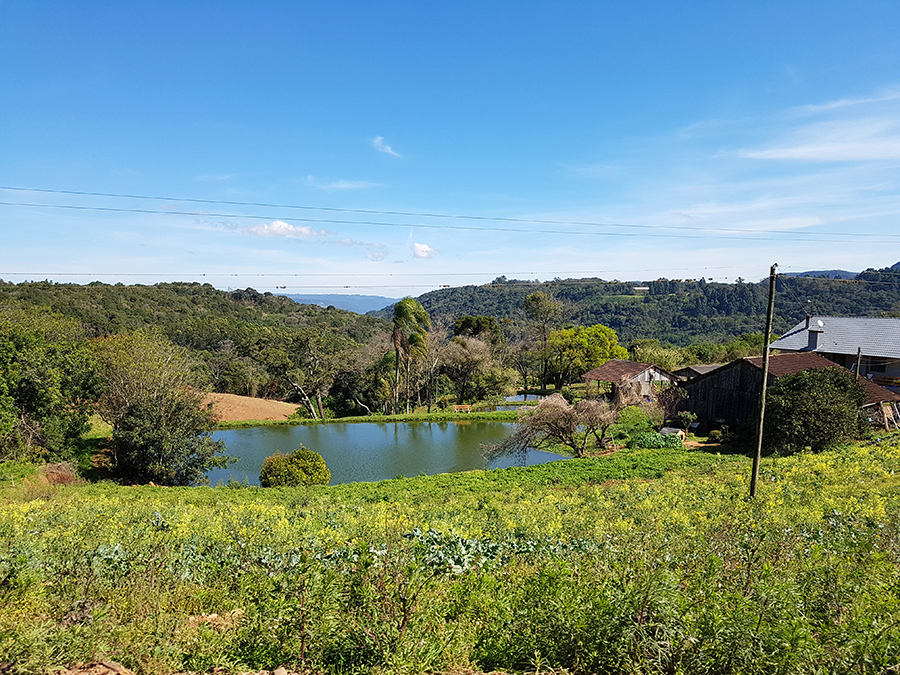 Uma paisagem de tirar o fôlego, com diversas propriedades rurais, animais no campo, tudo isso cercado por morros e vistas panorâmicas de toda região.