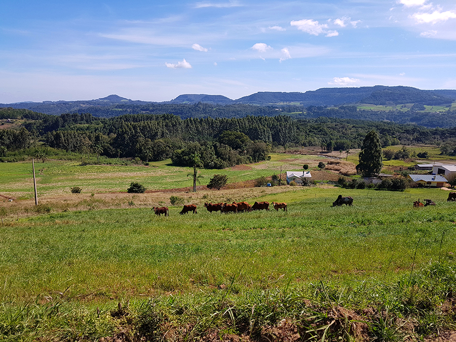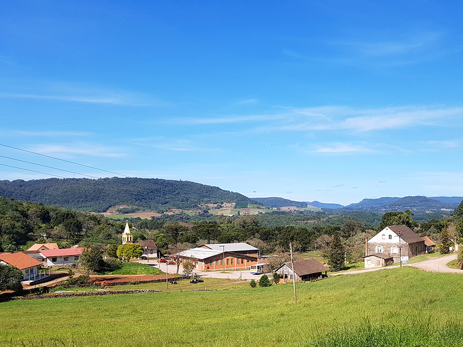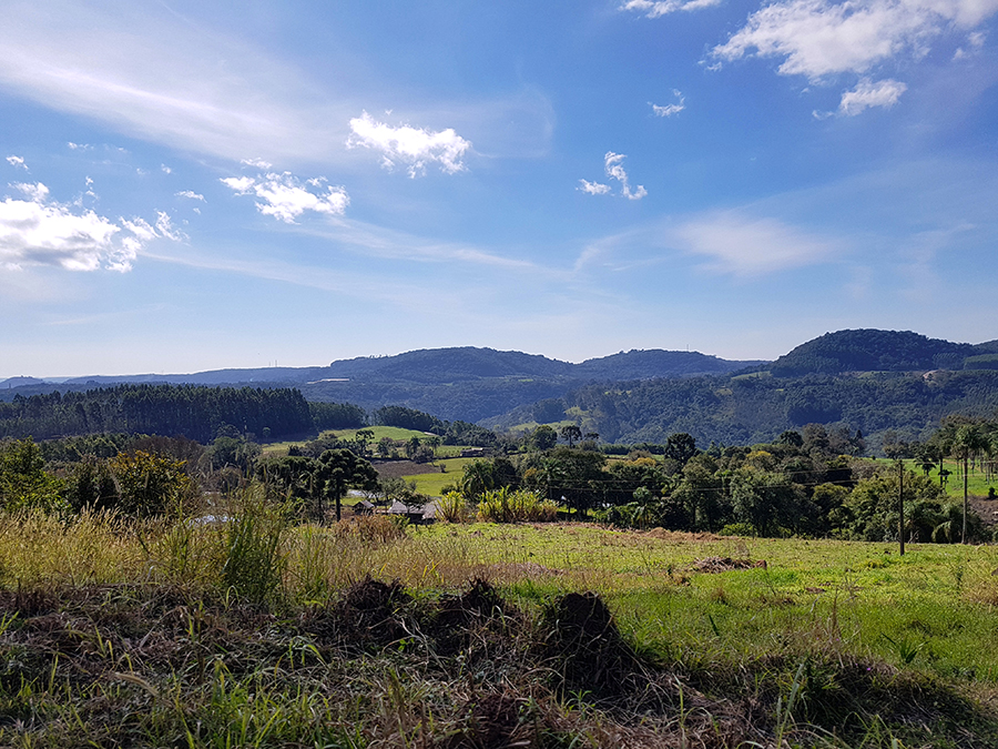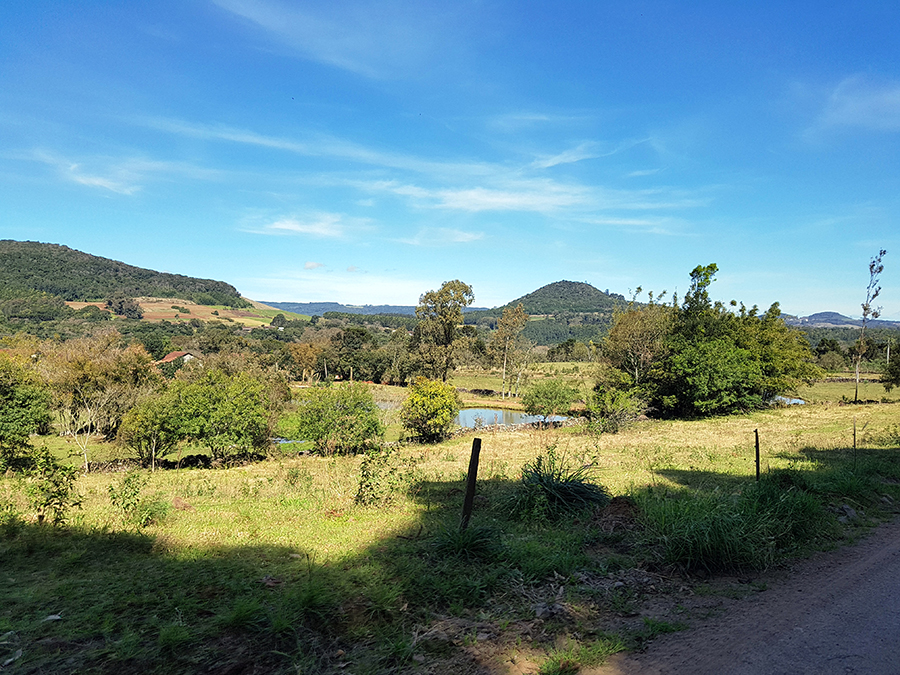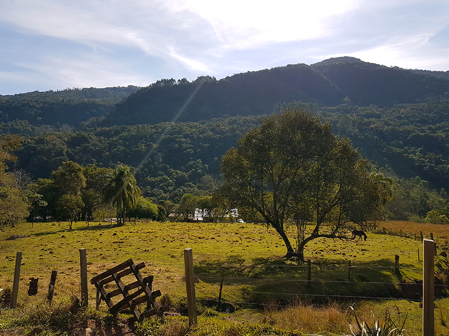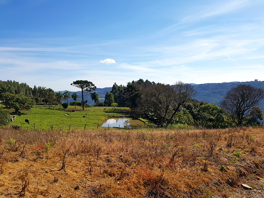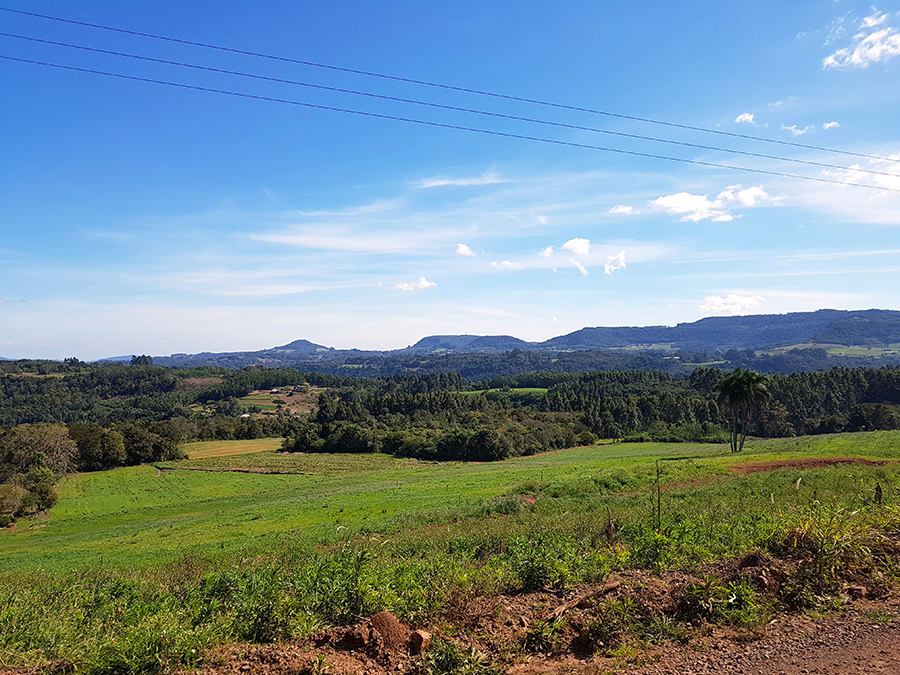 Uma paisagem de tirar o fôlego, com diversas propriedades rurais, animais no campo, tudo isso cercado por morros e vistas panorâmicas de toda região.