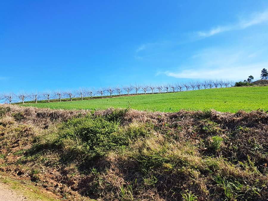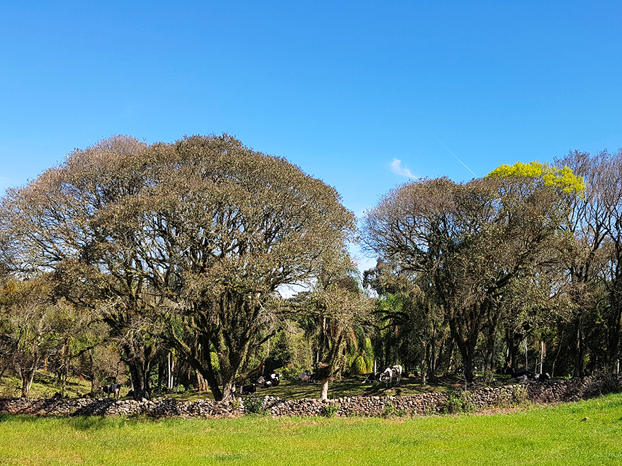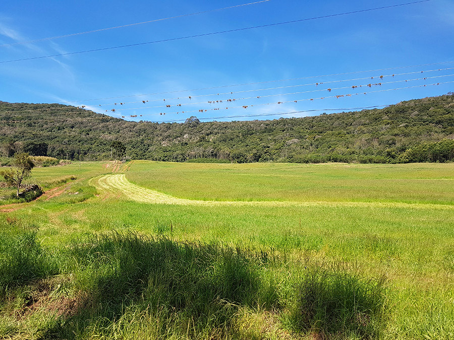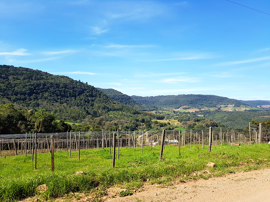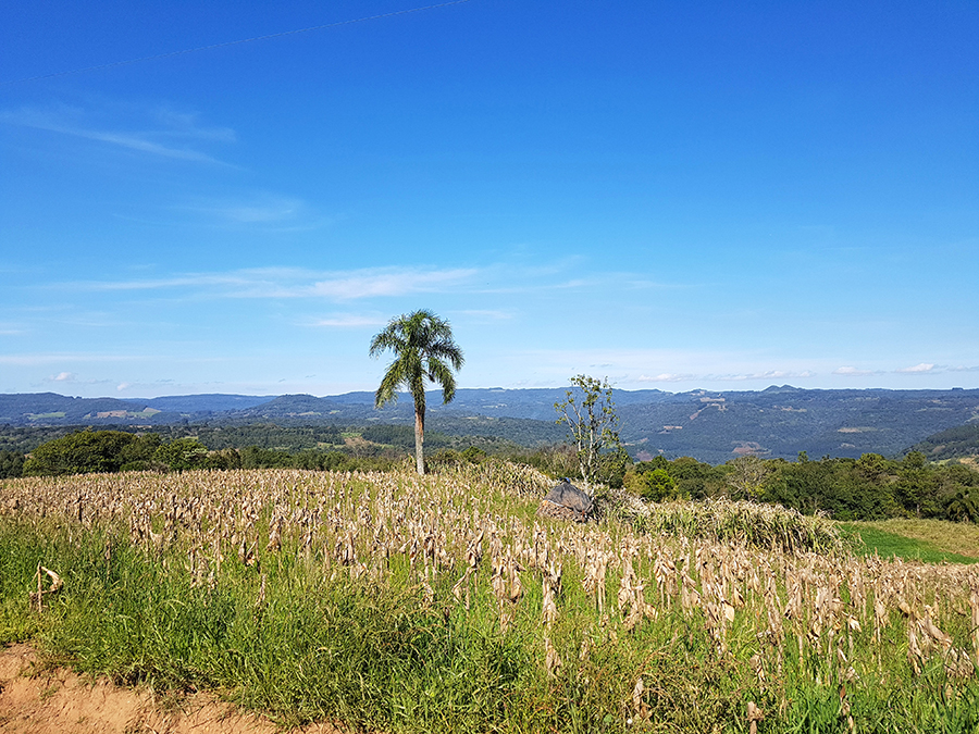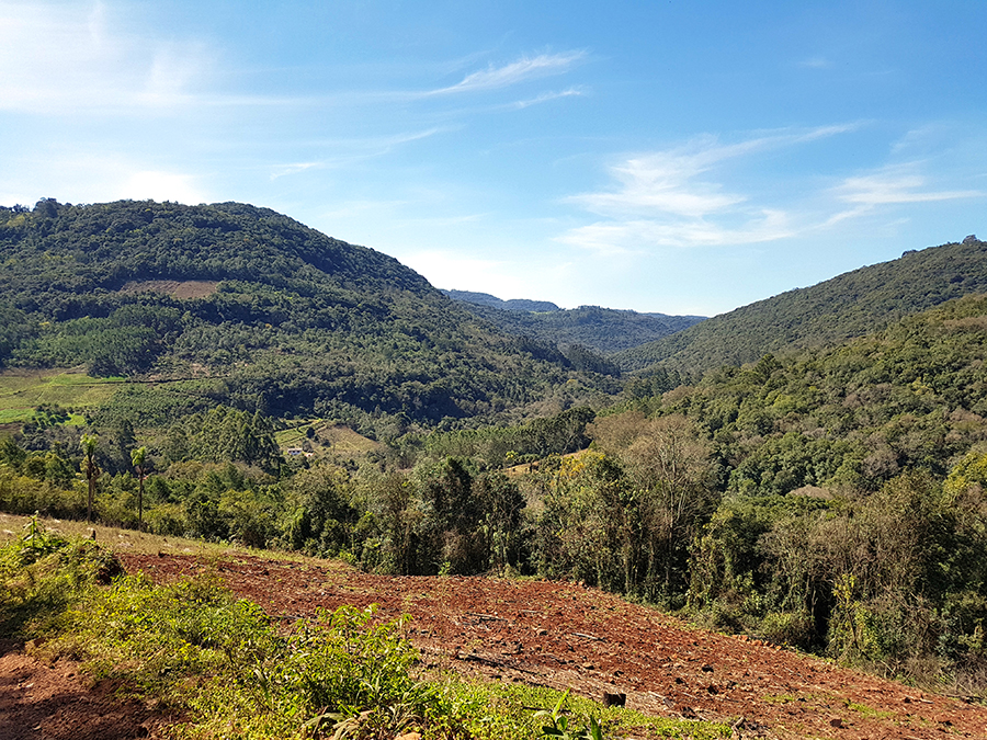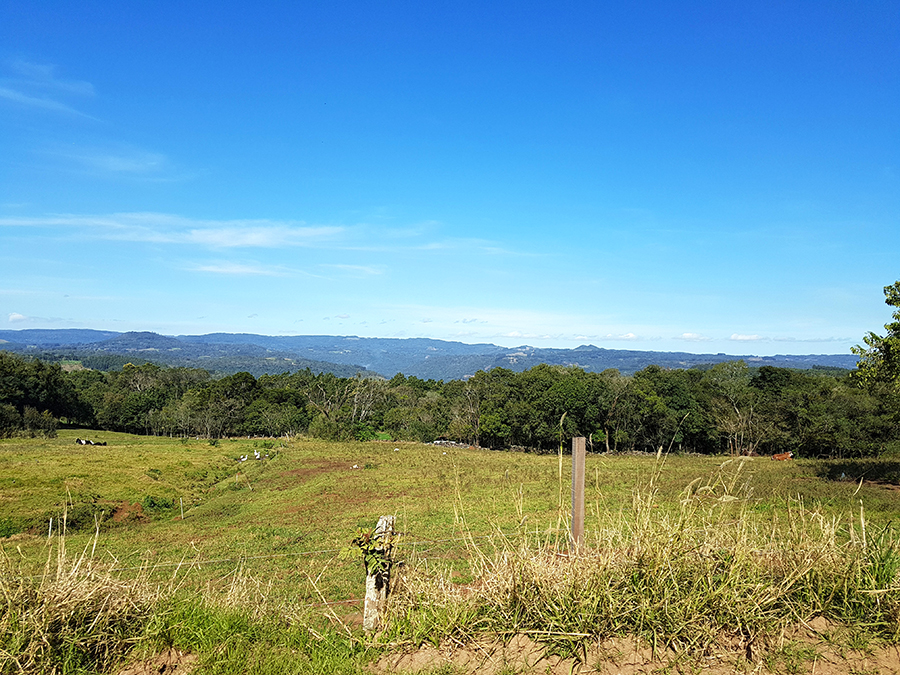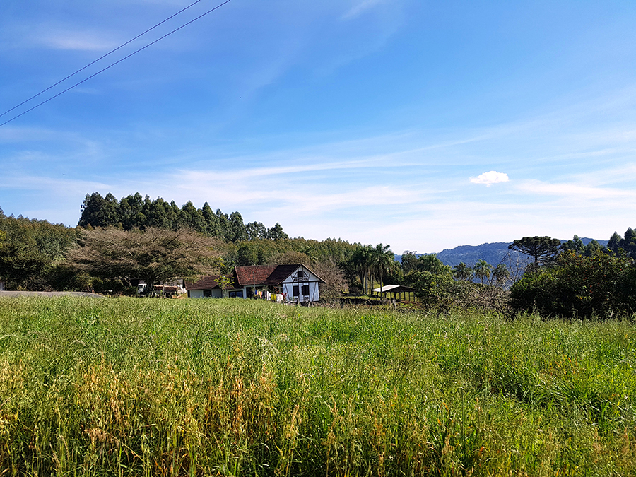Uma paisagem de tirar o fôlego, com diversas propriedades rurais, animais no campo, tudo isso cercado por morros e vistas panorâmicas de toda região.