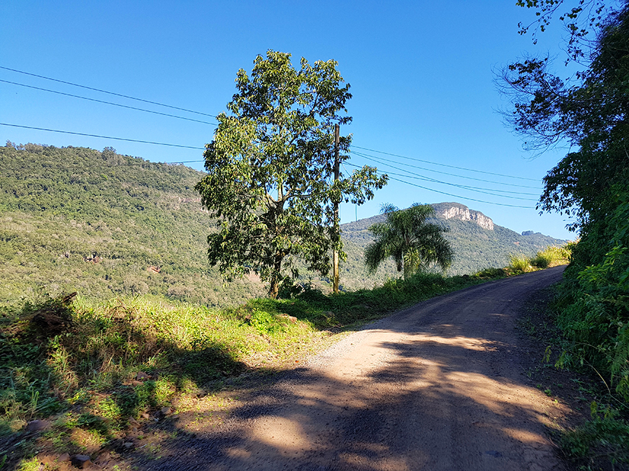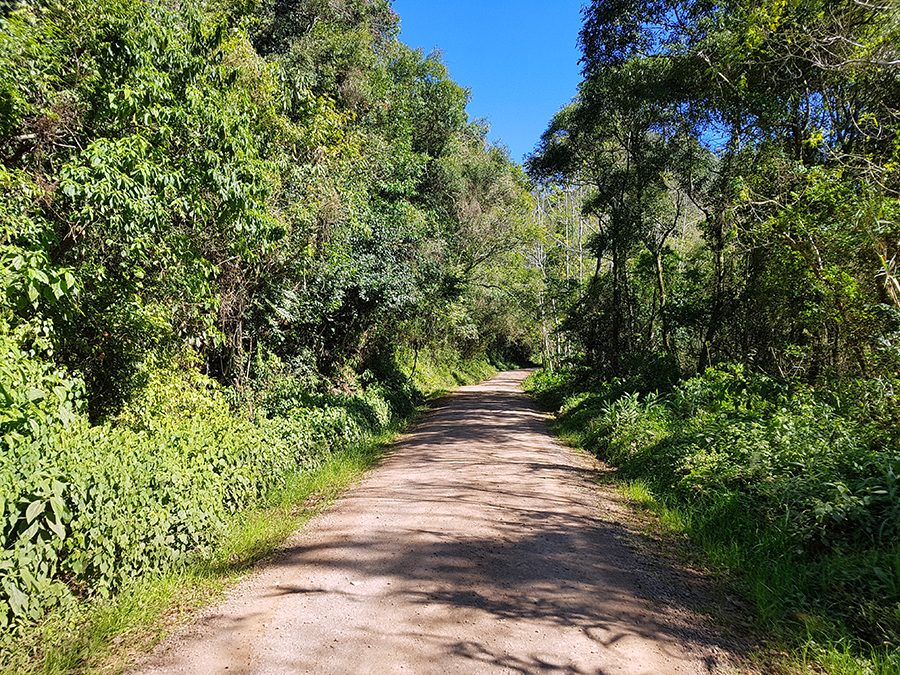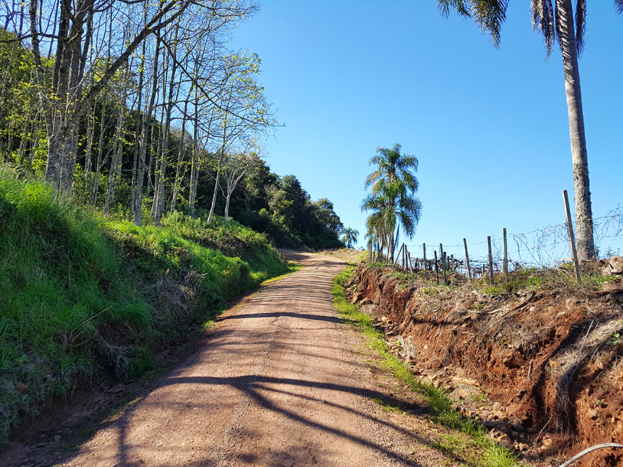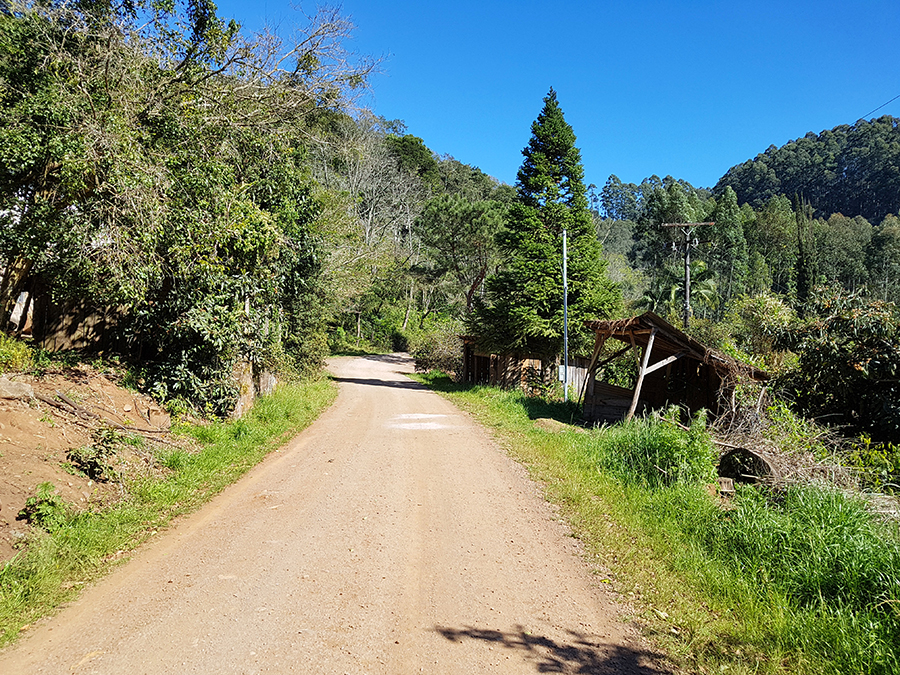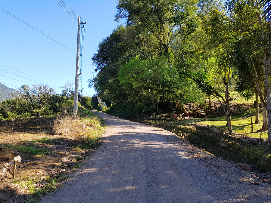 A estrada de chão está em boas condições, mas deve-se ter muito cuidado, pois é um trecho em aclive, com muitas curvas e britas pelo chão.