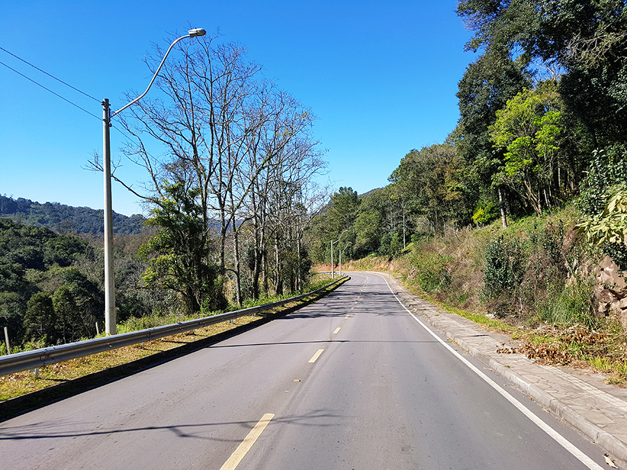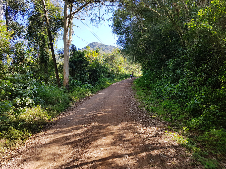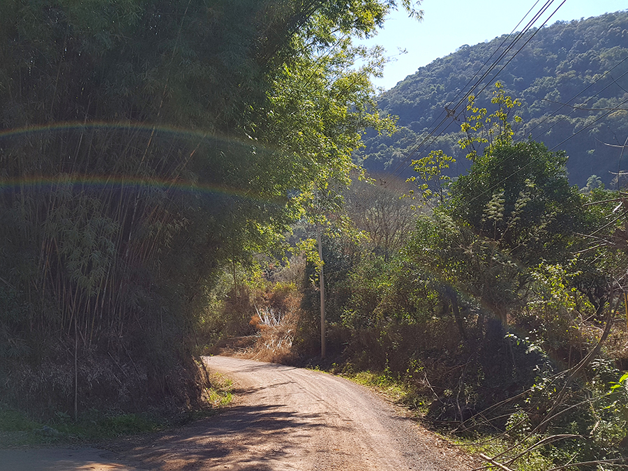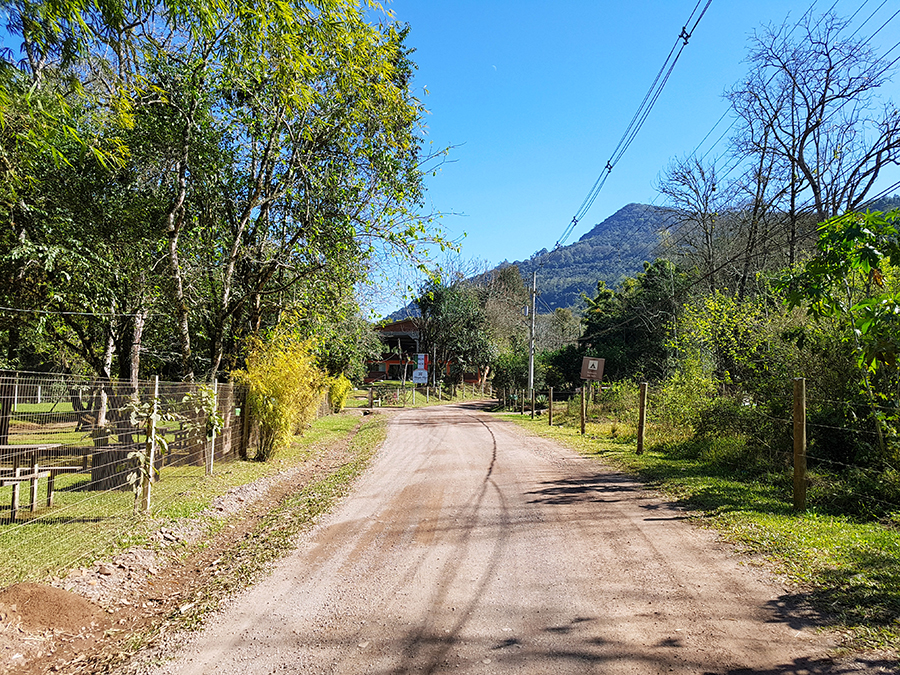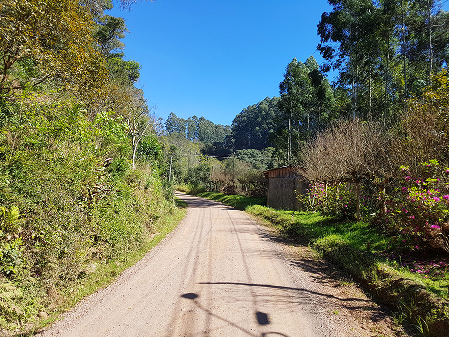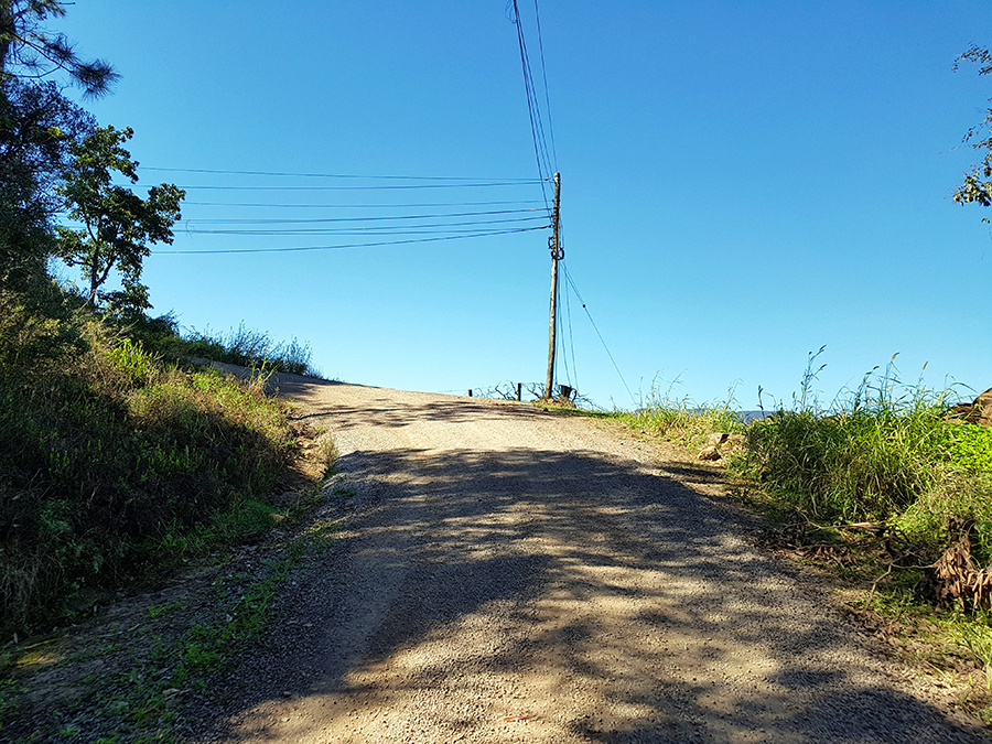 A estrada de chão está em boas condições, mas deve-se ter muito cuidado, pois é um trecho em aclive, com muitas curvas e britas pelo chão.