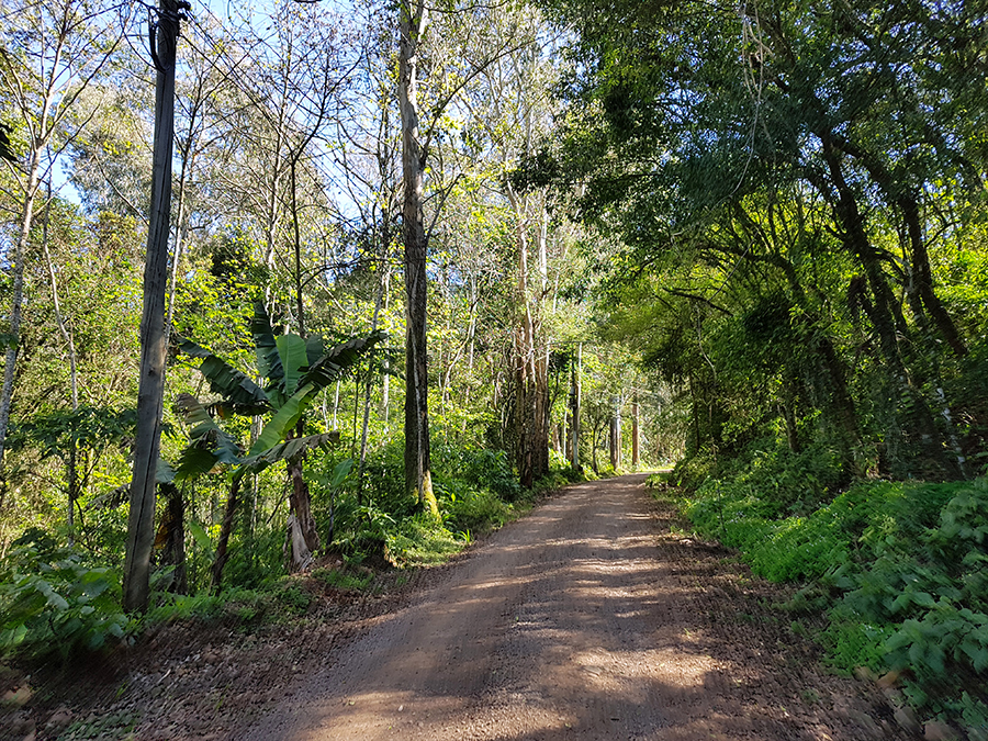 Nosso trajeto foi no sentido Vila Cristina até a localidade de São Luiz. O primeiro trecho foi por estrada de chão e o trecho final por estrada pavimentada.