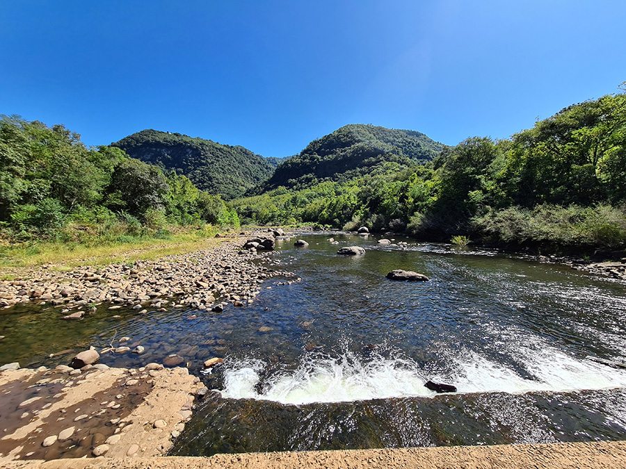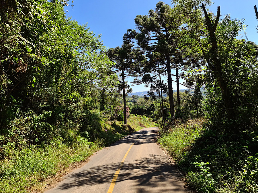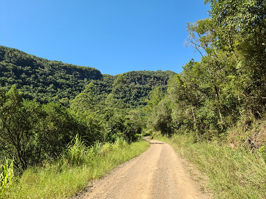 O mapa com as coordenadas do passeio está dividido em duas partes porque no Google Maps não há ligação entre o interior de Caxias do Sul e a Ponte do Raposo.