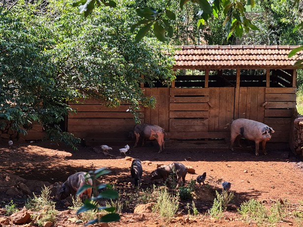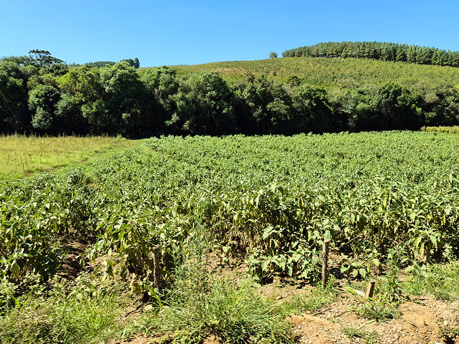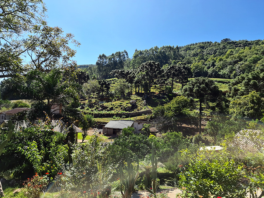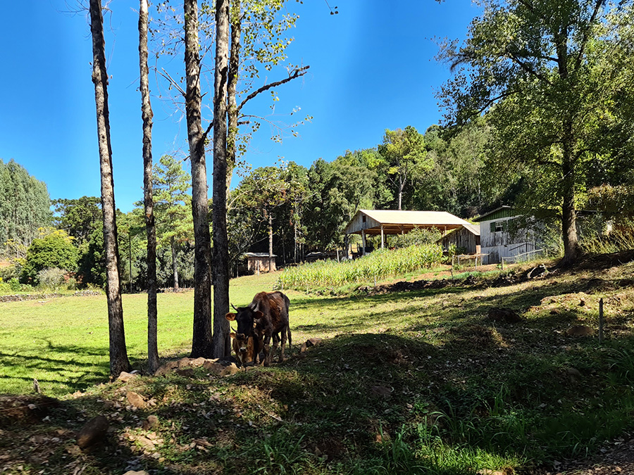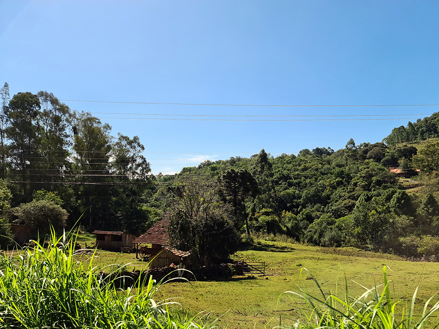 Animais no pasto, plantações de tomates, berinjelas, maçãs, caquis entre outras, lindas paisagens rurais em meio a morros e uma ponte de ferro centenária (Ponte do Raposo).