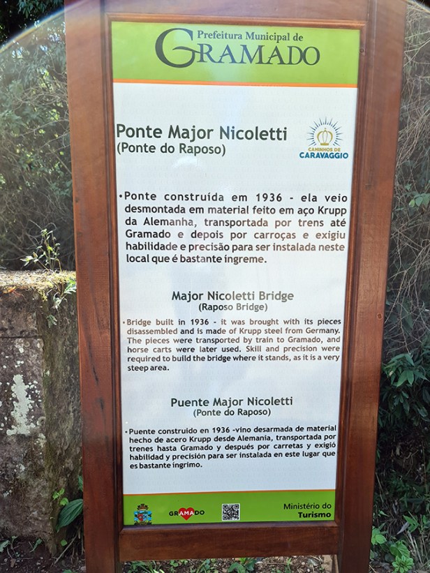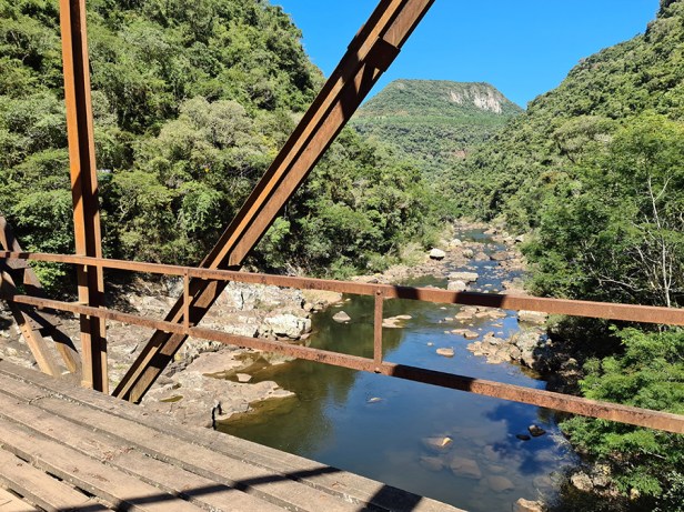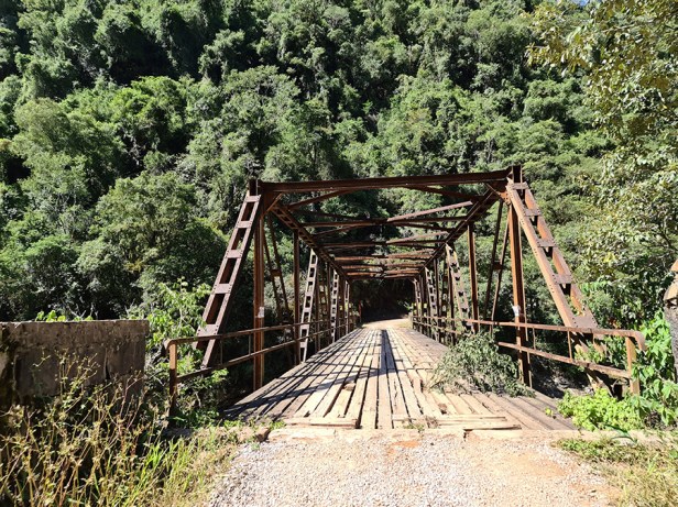 Esta ponte foi construída em 1936, com o aço sendo produzido na Alemanha e transportada desmontada por trens e carroças até o local. O peso da ponte é de aproximadamente 80 toneladas, suportando 16 toneladas e tem 40 metros de comprimento. Atualmente pouco conhecida e utilizada.