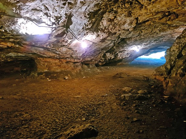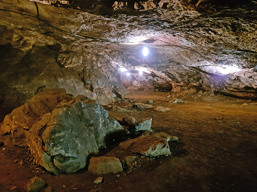 Os vestígios encontrados no local da gruta, indicam a habitação de índios Caingangues há aproximadamente 2.000 anos atrás. A largura da caverna é de 28 metros e a profundidade é de 67 metros repletos de túneis e passagens internas.