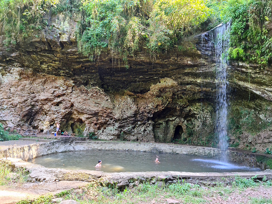 O acesso é via estrada de chão batido em estado regular, com muitos cascalhos e pedras soltas. Não há como traçar rota no GPS, mas há um desenho com o mapa. A entrada é um pouco antes de chegar a balsa. No local há uma cachoeira com uma piscina construída pelo exército. A água é gelada, mas proporciona um banho muito gostoso.