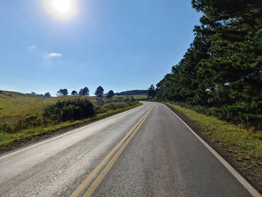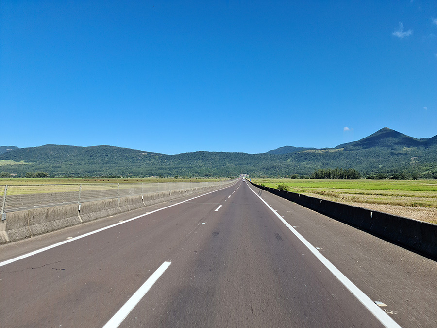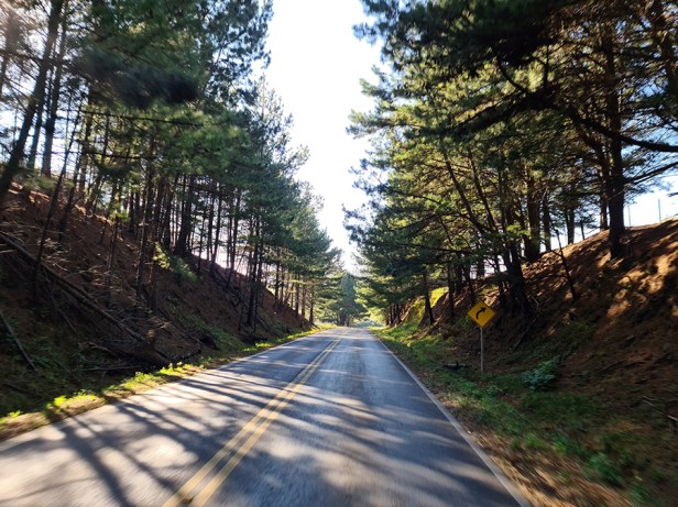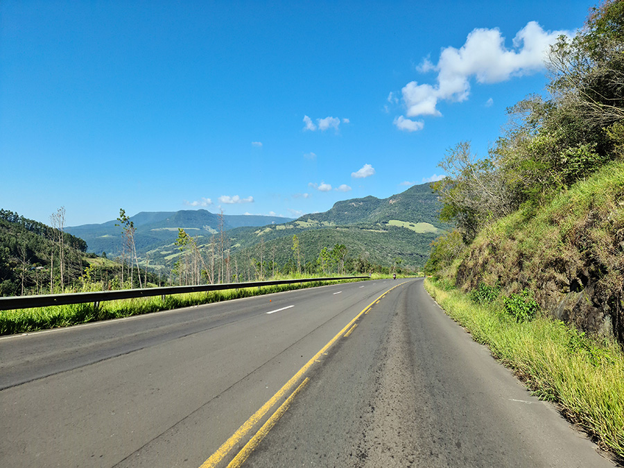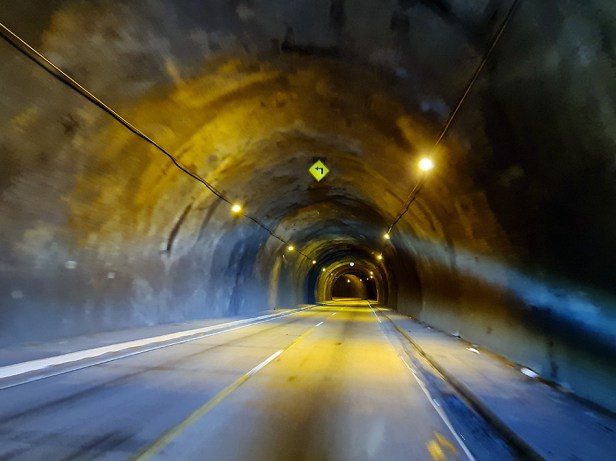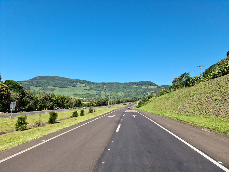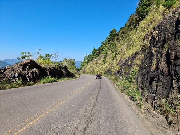 Linda rodovia em meio a Mata Atlântica, cercada por morros e belas paisagens, passando por dois túneis.