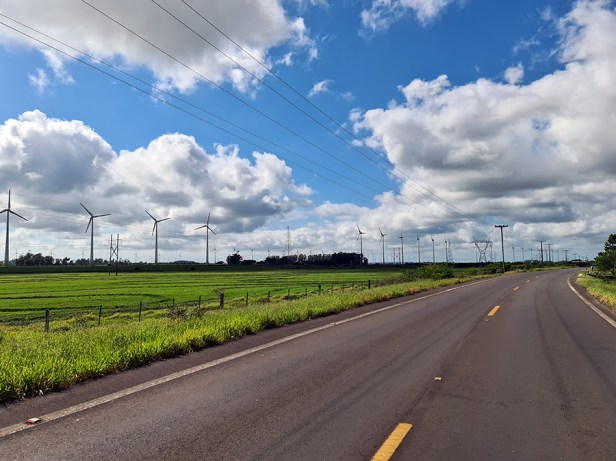 O que mais chama atenção são os aerogeradores de Osório, ao longo da estrada. Impressiona pelo tamanho e altura das estruturas. A vista ao longo do trajeto é muito bonita, com lagoas e pastagens.